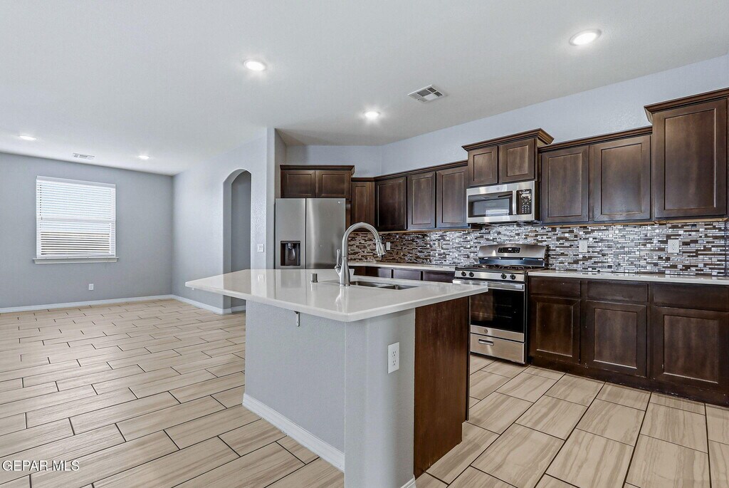 Experience modern living at 4704 Marisabel Azcarate,a beautiful Eastside El Paso home with 3 bedrooms,2 bathrooms,and a 2-car garage. The open-concept design features a large and bright living room flowing into a spacious dinning area and a gourmet kitchen with a large island,elegant quartz countertopsand abundant cabinetry.The primary suite is thoughtfully separated from the other bedrooms,offering a private retreat with a walk-in closet and luxurious ensuite with double-sink granite vanity. The two additional bedrooms are bright and inviting. Enjoy beautifully landscaped front and back yards,a covered patio,and a refrigerated cooling sytem.Ideally located close to schools,shopping,Fort Bliss and more,This home combines convenience with charm.