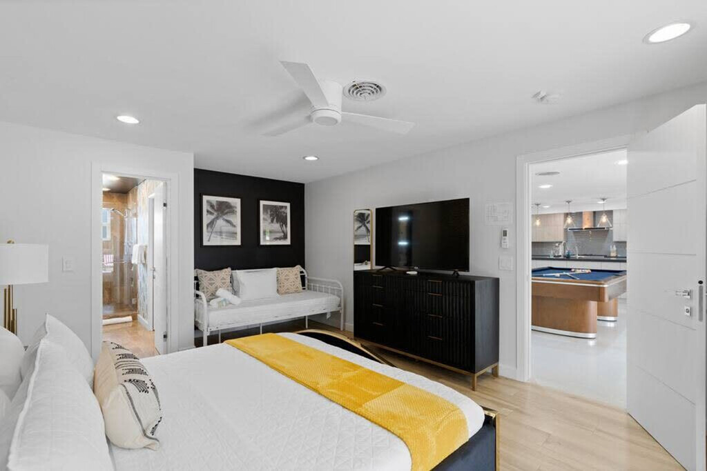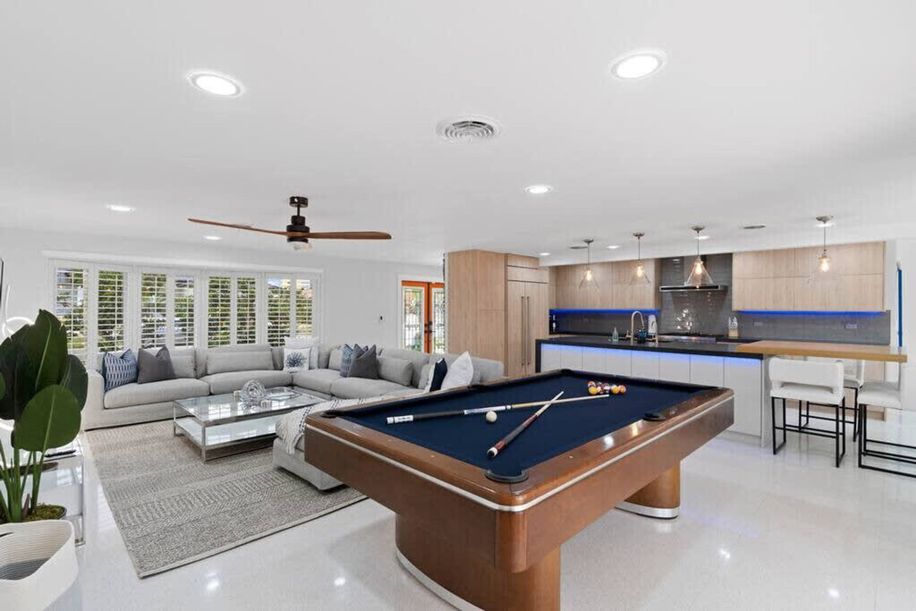 Feel at home in this luxury 4-bedroom, 3-bathroom family-friendly home in Fort Lauderdale, FL, perfect for an amazing vacation or extended stay. Nestled in a prime neighborhood, this home comfortably accommodates up to 11 guests and is just 1 mile from Lauderdale by the Sea and a 19-minute drive to Las Olas. Enjoy the convenience of being minutes from the beach, top attractions, and a variety of dining and shopping options. This home offers a private heated pool, an outdoor bar and patio, a pool table, and family-friendly amenities like a Pack n Play and high chair, all designed to make your stay as relaxing and enjoyable as possible. The chef’s kitchen is fully stocked with high-end stainless appliances, a large refrigerator, and a variety of coffee makers, ensuring you have everything you need for an unforgettable getaway. Each bedroom is equipped with a smart TV, and the living room features a 75" smart TV and a large plush sofa. Paid add-ons include a heated private pool at $100 per night, which can be heated to about 20-25 degrees above the ambient temperature. Parking is available for up to 5 cars. The pool must be heated for the entirety of your stay, and a 3-day notice is required before arrival if you'd like the pool heated. Explore nearby attractions such as Shooters Waterfront for scenic dining, Greek Islands Taverna for authentic cuisine, and Sandbar Grille for a relaxed beachside vibe. Fort Lauderdale Beach offers beautiful sand and clear waters, while Lauderdale-By-The-Sea provides a charming seaside town experience. Renting a car or using rideshare services like Uber and Lyft are convenient options for exploring the area. Check-in is at 4pm and check-out is at 10am. No pets are allowed, and no parties are permitted, with violations potentially resulting in immediate termination of the stay. An exterior camera is installed solely to monitor the cleaning team for quality and security purposes. Guests must be 21 years or older to book this property. The primary guest must complete a simple screening process within 48 hours of booking confirmation, and a non-refundable $60 damage waiver is required, covering accidental damage during your stay if reported prior to check-out. The absolute maximum number of guests is 11, and any evidence of a party or large gathering exceeding this limit will result in immediate eviction without refund. Registration Number: VR-22040068 [SI]
