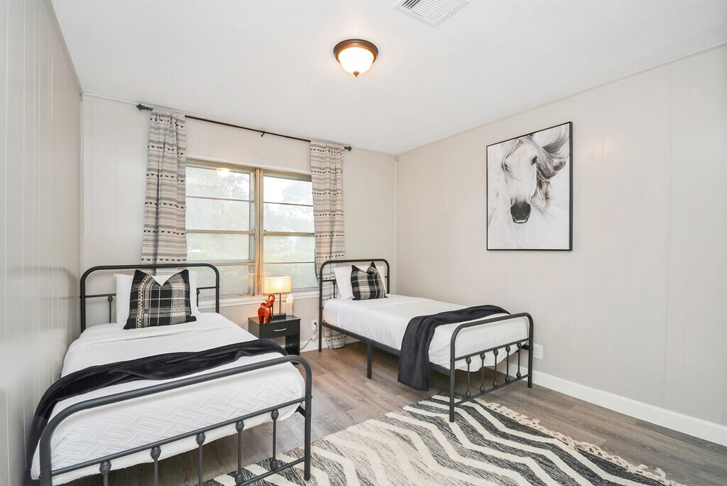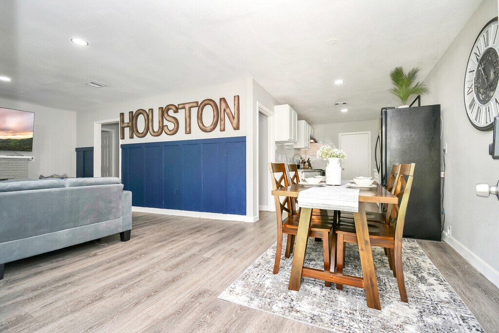 Escape to this beautiful 5-bedroom, 3-bath retreat in a peaceful, family-friendly Houston neighborhood and feel at home. This single-level home offers spacious and comfortable accommodations. This home offers spacious living areas for entertaining and a large private backyard perfect for outdoor dining, games, and soaking up the Texas sun. Smart TVs with popular streaming apps are available. House-trained pets are welcome with a $150 fee per pet. Starting from the seventh guest, a $39 fee per person per night applies. The fourth bedroom is opened for groups of eight or more guests. This peaceful Houston neighborhood offers a family-friendly atmosphere with tree-lined streets, well-kept homes, and a warm sense of community. It’s the perfect retreat — calm and relaxing, yet conveniently close to the city’s top attractions. You’ll enjoy easy access to major highways, shopping centers, parks, and great dining options. The neighborhood is perfect for a peaceful walk or a quick drive to many of Houston’s top attractions. With easy access to major highways and public transportation, getting around couldn’t be easier. Nearby highlights include William P. Hobby Airport (HOU) – 12 minutes, NRG Stadium (NFL) – 15 minutes, Minute Maid Park (MLB) – 15 minutes, SaberCats Stadium (Rugby) – 5 minutes, and Downtown Houston – 20 minutes. Only registered guests are allowed at the property. Smoking indoors is strictly prohibited, and a $500 fine applies for violations. Quiet hours are between 10:00 p.m. and 9:00 a.m. Violations of the house rules may result in reservation cancellation without refund. [SI]