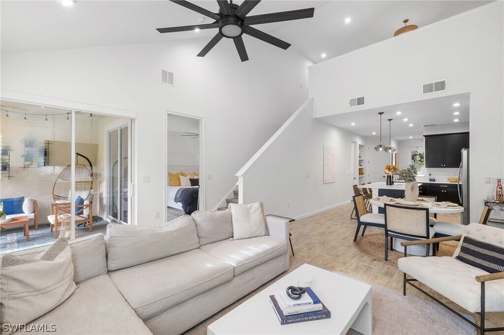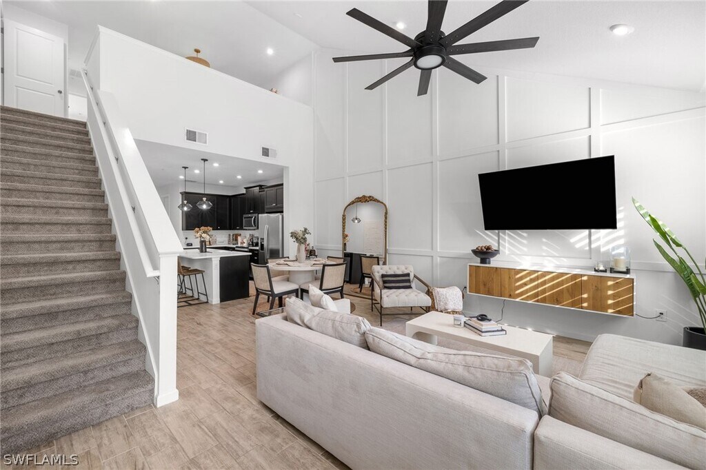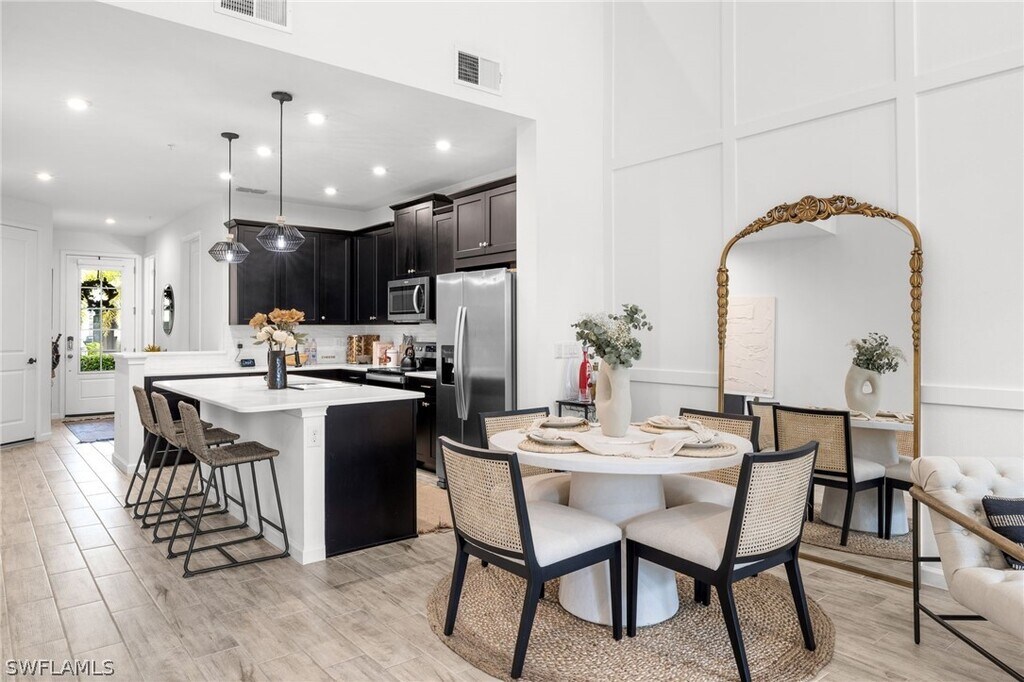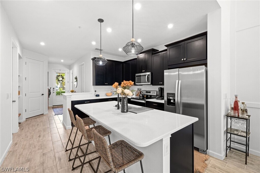 The perfect blend of coastal contemporary elegance and boho-inspired charm awaits in this stunning Sandbar model townhome located in the gated Arboretum community. Striking board-and-batten accent walls,designer light fixtures,soaring 9'4" ceilings,porcelain wood plank tile flooring,and abundant natural light create a space that feels straight out of a luxury home magazine. Thoughtfully designed for comfort and privacy,the primary suite is conveniently located on the ground floor,while guest bedrooms are tucked away upstairs. Two spacious living areas—one on each level—offer flexible spaces for relaxing,working,or entertaining. The open-concept kitchen features white quartz countertops,a sleek tile backsplash,42" espresso cabinetry,and stainless steel appliances. Residents enjoy access to resort-style amenities including a sparkling pool,fitness center,shaded cabanas,fire pit,BBQ and picnic areas,scenic walking paths,and a dedicated dog park. Ideally situated in the heart of the Naples Arts District,this townhome is just minutes from Gulf beaches,the Naples Botanical Garden,and the shopping,dining,and nightlife of 5th Avenue. The advertised rental price reflects the unfurnished rate. Please inquire for furnished pricing and availability. This home offers effortless luxury,a prime location,and a lifestyle designed for everyday enjoyment. Dog friendly!!!