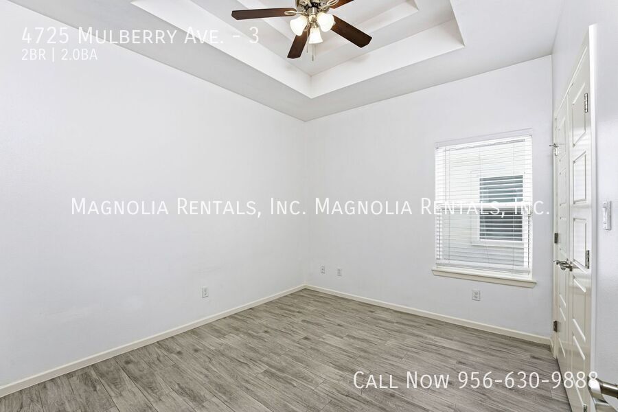 Welcome to 4725 Mulberry, a stunning 2-bedroom, 2-bathroom apartment located in the vibrant city of McAllen, TX. This apartment boasts a modern open floor plan, high ceilings, and a dedicated living room space, perfect for entertaining or relaxing. The kitchen is equipped with stainless steel appliances, including a refrigerator, microwave, and stove/oven, all designed to make your culinary adventures a breeze. The apartment also comes with a washer and dryer, ensuring your laundry days are hassle-free. The master bath is a luxurious retreat with modern fixtures, and the entire apartment is cooled with ceiling fans for your comfort. This pet-friendly apartment welcomes your furry friends, with certain breed restrictions. As a resident, you'll have access to 24/7 maintenance support and will be responsible for all utilities. A 12-month lease is required. Please note, this is a no-smoking property. Experience the best of McAllen living at 4725 Mulberry. 12 Month Lease 24/7 Maintenance Support Modern Fixtures Pet Friendly With Breed Restrictions