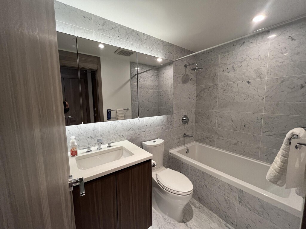 With 545 sqft of living space in 1 Bedroom (1 Bath) with high-end features. Enjoy unlimited views on a more than 180 sqft Deck. Bosch full-sized appliances and Full sized washer/dryer are offered. Fan coil-based, integrated heating and cooling system. Well-appointed amenities include Concierge/ 24 Hour WIFI cover in public areas, furnished lounge, Fitness centre, Yoga studio. Theatre room, Entertainment lounge, Games room, Music Room. One block away Brentwood mall commercial central area, Skytrain station. • Lease Term: Minimum 1 year lease • No pets, No smoking, no drugs • Furnished with Two beds • Hydro & internet not included • Tenant Insurance is mandatory & tenant responsible for the move in/ out fee • Availability Date: Immediately Credit, income and reference checks will be conducted. Property professionally managed by Hooli Homes Realty. If interested, please reply by email or text (no call please) with the following information:1)Your name, 2)phone number, 3)email address, 4)expected length of stay, 5) who the occupants will be. Disclaimer: The above information, while deemed to be correct, is not guaranteed. The information contained herein has either been given by the property owner or obtained from sources that we deem reliable. Hooli Homes provides professional property management services on behalf of the owner of this property.