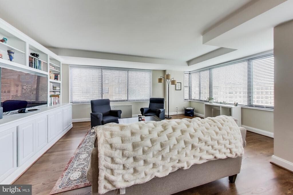 - Additional Property DetailsDavid Goldberg- Stunning 9th-floor 2 bed, 2 bath corner residence. A spacious open layout showcases gorgeous hardwood floors and crisp moldings. The living area features wall to wall windows and a sleek built-in media center. Gourmet kitchen features sleek cabinets, marble counter tops, stainless steel appliances and breakfast bar. Both bathrooms have been renovated while closet systems provide exceptional storage. Secure building with 24 hour front desk. Rooftop access with spectacular views. Close proximity to Van Ness Metro, dining, and shops. 1 garage parking space. All utilities included!