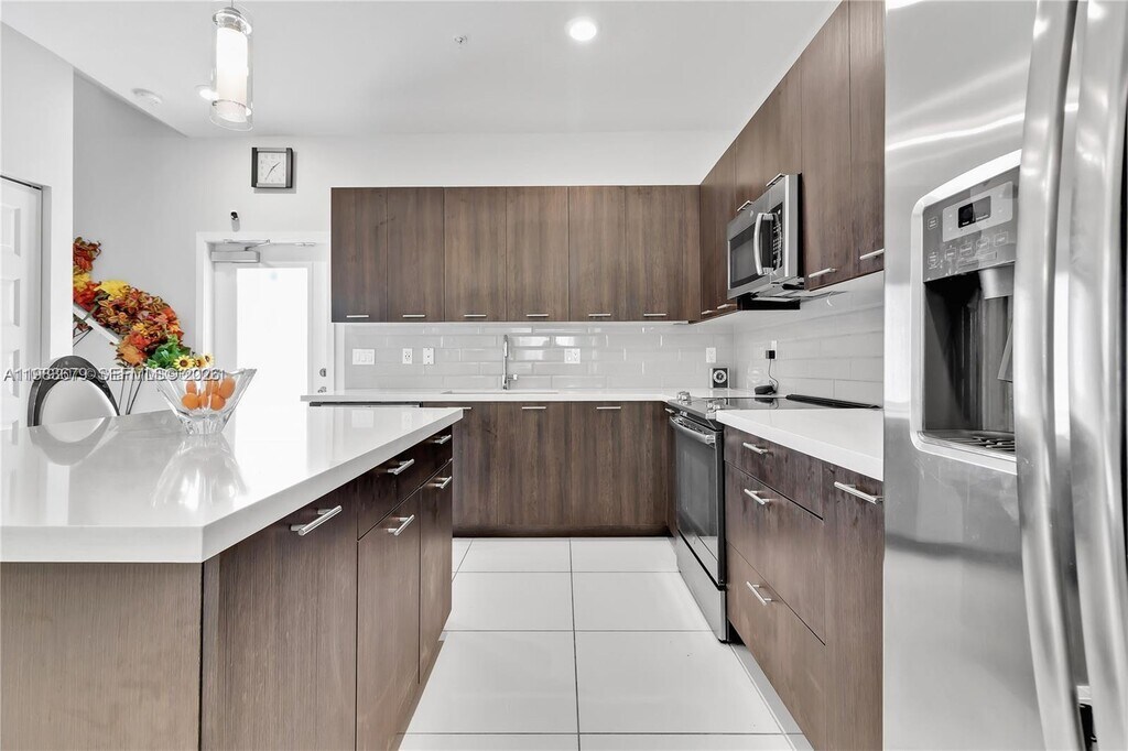Spacious 4/3 unit at Urbana. Extensive open-concept space, incorporating the living room, kitchen, family room, & dining room. Spacious island ideal for entertaining, the kitchen also includes Stainless Steel Appliances, contemporary flat-panel cabinets, luxury countertops, as well as a pantry. Adjacent to the kitchen are the powder room, linen closet, storage, and stairs to the second floor. The upstairs leads to BR's 3 & 3, their bathroom, laundry closet, and master. Sharing a wall with the master BR, room 4 is perfect for children or as a study. In the master, sliding glass doors open to a balcony. The master bath boasts an oversized, glass-enclosed shower, his and her sinks, and a separate water closet. A walk-in closet completes the master suite. MLS # A11983679