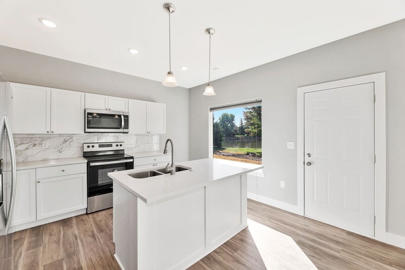 Peaceful Location! Modern Home Built in 2021! Location: A short drive to WSU, KOCH, Shopping, Hospitals, and Highways. Come see this BEAUTIFUL zero-entry home with a modern open floor plan, and boasts abundant natural light with large picture windows facing out to a peaceful view. Patio partitions in the back yard provide extra privacy. On the main level the kitchen features granite countertops, including a 5 1/2 foot island with kitchen sink, garbage disposal, dishwasher, and comfortably fits 2-3 counter-height bar stools. Other kitchen appliances include refrigerator with an ice maker, stove/oven, and microwave. The pantry located just off the kitchen is great for EXTRA storage!! A half-bath and coat closet is also located on the main level, conveniently located just inside the attached garage entrance. All 4 bedrooms and laundry hookups are located on the upper level. The master bedroom is located off the back of the home, and features a walk-in closet and master ensuite with a double vanity, plus granite countertops!! A second full bathroom with shower/tub combo is located on the upper level as well. *Tenant to provide washer and dryer. *Some finishes may vary from pictures including exterior color, cabinetry and flooring color, and hardware selections. Pricing is based on a 12-month lease agreement. Tenant is responsible for all utilities such as; City of Wichita Public Works, Kansas Gas Service, and Evergy Electricity, Air Capital Waste, Cable/Internet. Mowing is provided by the landlord. Smoking is not allowed on the property. Security Deposit is equal to monthly rent rate. Non-Refundable Pet Deposit, if any, is equal to 1/2 of monthly rent rate. Please inquire for showing request and application details. Landlord pays for your mowing. Tenant pays utilities. Tenant to provide washer and dryer. No Smoking on the property or premises Non-Refundable Pet Deposit, if applicable, equal to 1/2 of rent rate. Extra parking fee of $40 to be assigned to households possessing more than two vehicles, includes a reserved parking stall. This is a beautiful 4 bedroom, 2.5 bath duplex. Pet-free. Smoke-free. 2 car garage. Granite Countertops. Large picture windows. Laundry and bedrooms on upper level. Master ensuite. Tenant pays all utilities. Mowing provided.