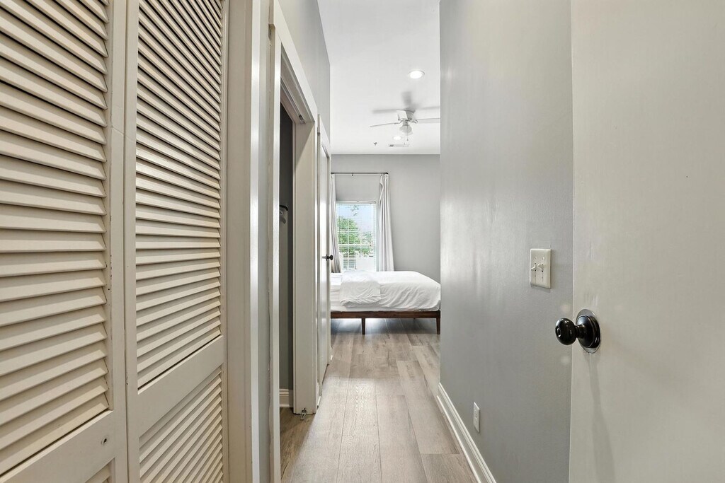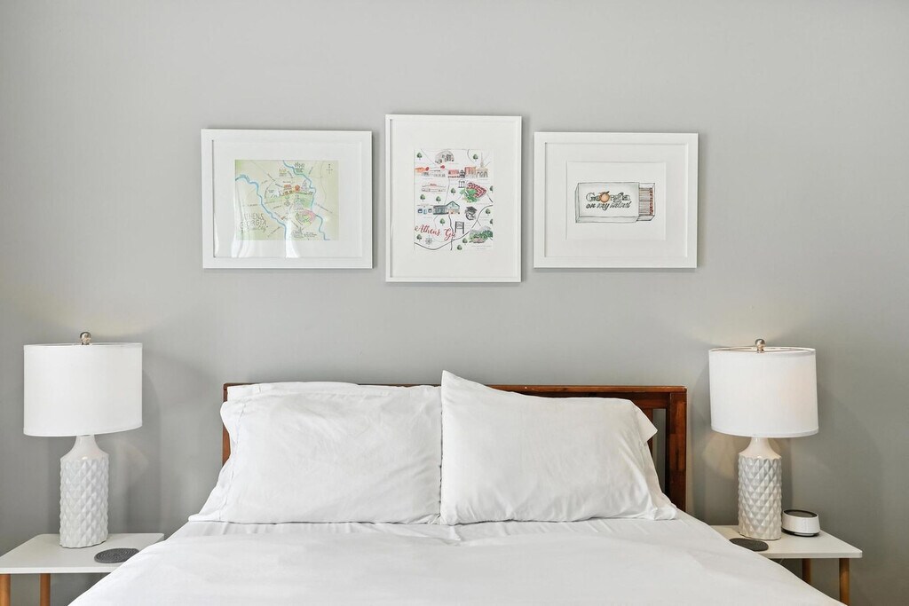 Feel at home in this bright and spacious second-floor apartment, just steps away from the city's top restaurants, coffee shops, and entertainment venues, and only one block from the Classic Center. The University of Georgia campus and Sanford Stadium are a short, easy walk away, making this the perfect home base for any visit. Stairs are necessary to get to the unit. The unit features three large bedrooms, each with a private en-suite bathroom. The open-concept kitchen and living area create a welcoming space for relaxing or entertaining. The fully stocked kitchen includes all essential cookware, plus a large island with bar stools for casual dining. A starter supply of paper towels, dish soap, dishwasher detergent, and trash bags are provided. Unwind in the living room with a 55" TV equipped with an Amazon Fire Stick to stream your favorite shows on Netflix, Hulu, and Prime Video. A washer and dryer are located at the end of the hallway and available for guest use. Parking is located in the nearby parking garage or on the street and is paid parking and subject to availability. A car is recommended. Nearby options for activities, dining and drinks include Porterhouse Grill, Mellow Mushroom, Jinya Ramen Bar, Osteria Athena, Depalma's, Taqeria Tsunami, The Place, The Grill, Pauley's Crepe Bar, Barberitos, Blind Pig Tavern, and Alumni Cookie Dough. Check-in instructions will be provided before your arrival. [SI]