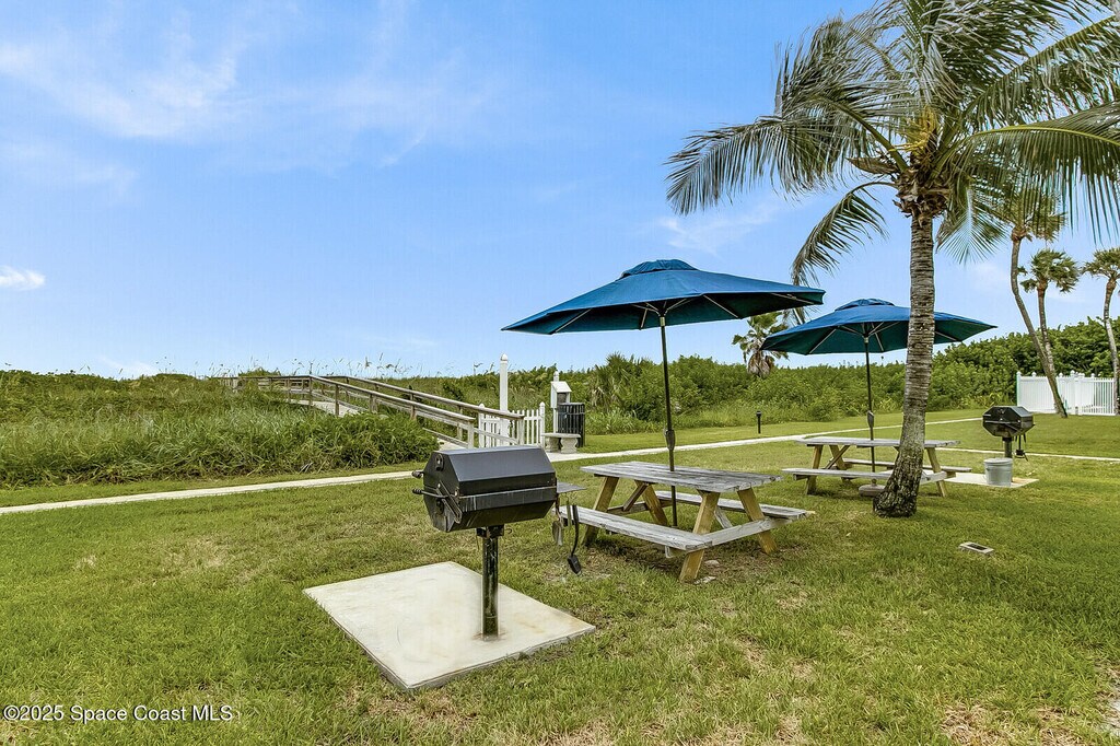 What a great 2 bed 1 bath in this Direct Ocean front community with the beach only steps away from your back patio. This ground floor unit has many wonderful features including updated kitchen,bath &,flooring. Furnished and fully equipped with all you need for your stay at World Famous Cocoa Beach. Community amenities offer a Heated pool,small splash pool,on-site Laundry,BBQ & picnic area,private beach access,beach-side shower & clubhouse. Rent includes water,cable & wi-fi. Located within walking distance to dining,entertainment,nightlife,shopping & the Cocoa Beach Pier. Long term rate of 6 months or longer is $1950/month. Available for 3 months minimum at a higher rate plus12% tax. Available for the 2025-2026 Season. No pets please.