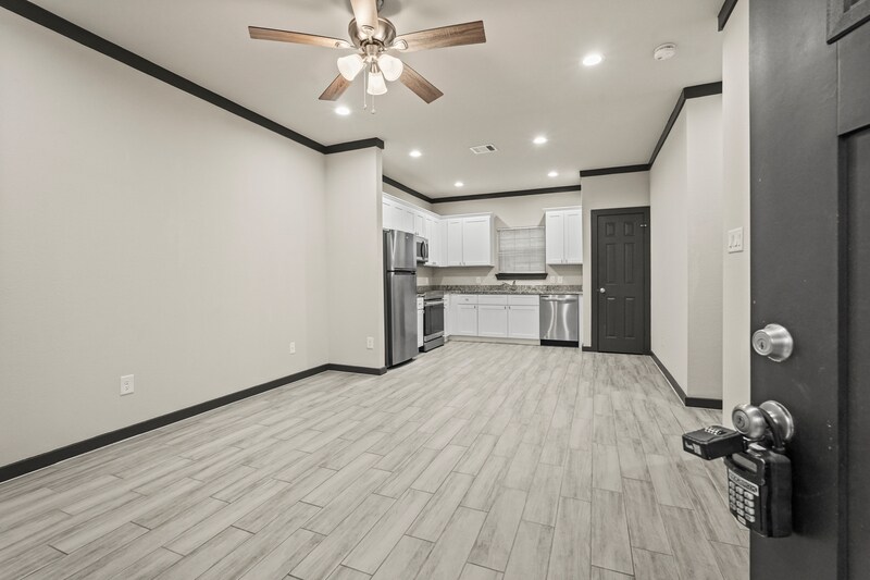 Beautiful 2-bedroom, 2-bath duplex featuring modern flooring throughout—no carpet. The open-concept kitchen flows seamlessly into the living area and is equipped with stainless steel appliances, offering both style and functionality. Thoughtfully designed layout with a contemporary feel, perfect for comfortable everyday living.
