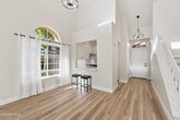 Step into this extensively renovated and highly sought-after Capri 2 townhome, located in one of Oak Park’s most desirable resort-style communities, where comfort, style, and convenience come together in a thoughtfully designed space. The fully remodeled interior welcomes you with vaulted ceilings, abundant natural light, and a bright, open-concept layout that seamlessly connects the living and dining areas, all highlighted by a cozy gas fireplace that adds warmth and character. The home features a combination of new tile and wood-like laminate flooring for a clean, modern aesthetic. The completely renovated kitchen is a standout, showcasing new custom white shaker cabinetry, quartz countertops, a cheerful breakfast nook, and all brand-new stainless-steel appliances, including a refrigerator, stove, in-drawer microwave, and high-end Bosch dishwasher. Offering exceptional flexibility, this home features two spacious primary en-suite bedrooms—one conveniently located downstairs and one upstairs—each with fully remodeled, all-tile bathrooms featuring custom shaker-style vanities, mirrored wardrobe closets, and ample storage. The 2025-installed HVAC system includes a Bosch air conditioning unit to ensure year-round comfort, while new modern lighting with dimmers, washer, and dryer hookups, and updated front door locks add convenience and peace of mind. The private attached two-car garage features a brand-new motor with a backup battery, also installed in 2025. Outdoors, enjoy a gated backyard patio ideal for entertaining or quiet evenings, adjacent to a grassy common area that enhances the sense of open space and privacy. Just minutes from hiking trails, neighborhood parks, and Oak Park’s top award-winning schools. Don’t miss your chance to make this stunning home yours.
