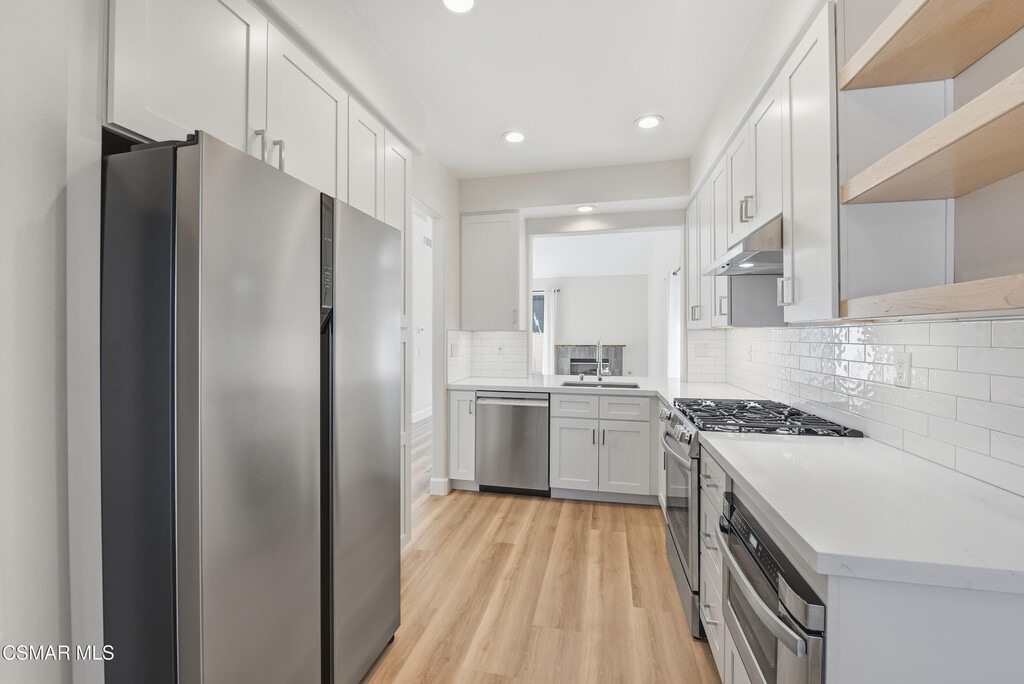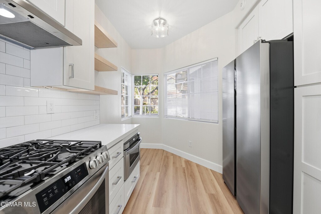 Open house 10/25/25 10:00AAM - 11:30AMStep into this extensively renovated and highly sought-after Capri 2 townhome, located in one of Oak Park's most desirable resort-style communities, where comfort, style, and convenience come together in a thoughtfully designed space. The fully remodeled interior welcomes you with vaulted ceilings, abundant natural light, and a bright, open-concept layout that seamlessly connects the living and dining areas, all highlighted by a cozy gas fireplace that adds warmth and character. The home features a combination of new tile and wood-like laminate flooring for a clean, modern aesthetic. The completely renovated kitchen is a standout, showcasing new custom white shaker cabinetry, quartz countertops, a cheerful breakfast nook, and all brand-new stainless-steel appliances, including a refrigerator, stove, in-drawer microwave, and high-end Bosch dishwasher. Offering exceptional flexibility, this home features two spacious primary en-suite bedrooms--one conveniently located downstairs and one upstairs--each with fully remodeled, all-tile bathrooms featuring custom shaker-style vanities, mirrored wardrobe closets, and ample storage. The 2025-installed HVAC system includes a Bosch air conditioning unit to ensure year-round comfort, while new modern lighting with dimmers, washer, and dryer hookups, and updated front door locks add convenience and peace of mind. The private attached two-car garage features a brand-new motor with a backup battery, also installed in 2025. Outdoors, enjoy a gated backyard patio ideal for entertaining or quiet evenings, adjacent to a grassy common area that enhances the sense of open space and privacy. Just minutes from hiking trails, neighborhood parks, and Oak Park's top award-winning schools. Don't miss your chance to make this stunning home yours.
