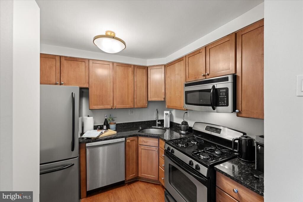 Gas and water incl. Renovated, spacious, and sun-filled 1 bdrm with huge windows, gleaming hardwood floors and gourmet kitchen with granite counters. Washer/dryer and dishwasher inside unit. Back entrance steps from parking lot, zoned for Zone 3 residents. Parking is always plentiful there. Green canopy summer and spring view, Palisades town view in winter and fall. Dining alcove and living room bump out. Spacious bedroom with plenty of room for a Queen or King bed. Additional washers / dryers in separate laundry facility within building, free to building tenants. Apartment steps from BlackSalt, Lupo Verde, Makoto, Kotobuki restaurants and so many other services and shops. Many eateries have outdoor dining. Very short walk to C&O Canal walking and cycling trails. Convenient bus stop steps away. Video available upon request. Best of all worlds in this location!