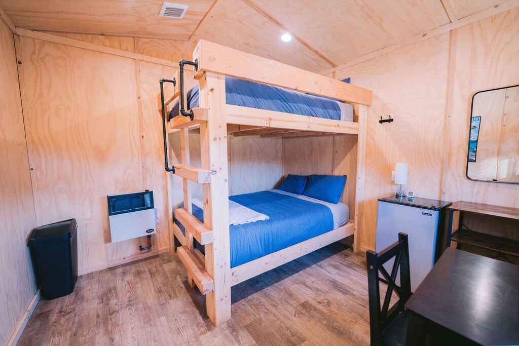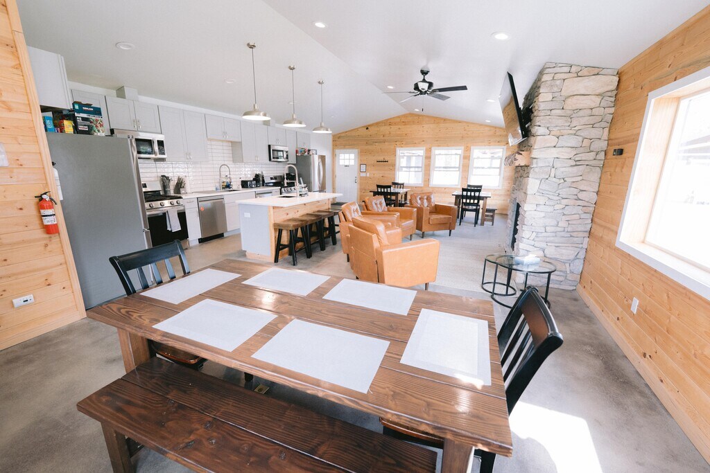 Cabins Available Today! Winter Special - 1st month rent FREE (four month minimum). $800/month ALL utilities included (electric, gas, water, trash, wifi, snow plowing, etc...) New Construction + Lots of other amenities included that are listed below! Monthly and some Annual leases are available- cabin types vary. Amenities included: - 24/7 Video Surveillance of Common Areas and roads - On site Management - Management Provides Daily Cleaning of the Kitchen/Living/Bathroom (Basecamp) shared spaces. - Fully Stocked Double Kitchen (Dishes, Silverware, Cooking Utensils Pots/Pans, Baking Pans, Mixing Bowls, Measuring cups/spoons, Coffee Maker(s), Broom/dustpan, Cleaning supplies, Paper Towels, Trash bags, etc...) - Stainless Steel Appliances - Gas Stovetop/Oven Ranges, and Gas Grills - Microwaves, Dishwashers, Refrigerators - Gas Fireplace, 4 Cozy Chairs - Multiple dining tables/chairs, Big Screen Smart TV - 7 Private Bathrooms with security locks (bath mats, shower curtain/liner, toilet bowl brush/plunger, toilet paper, paper towels, hand soap) - Three Full Sized W/D (Starter pack of soap pods provided) - Shared Covered Porch with Adirondack Chairs - Fire Pit - Firewood for sale on property Cabin has: - Bunk bed (Q/Q- F/F, Q Loft) - Linens and Towels/Wash Cloths Included - Gas Heater/Fully insulated for year-round comfort- Vent Fan - Personal porch with 2 chairs - Mini Fridge, Blackout shades, Small table/2 chairs, Storage shelf unit, Wall hooks - Snow shovels provided for private porch These cabins sit on a 13-acre property and includes a 1,600 sq ft social lodge/bath house called Base Camp. This location is convenient to town, yet private, quiet, and secure. Lease Term is negotiable, and Annual Leases may be available. No smoking, vaping, drugs, growing