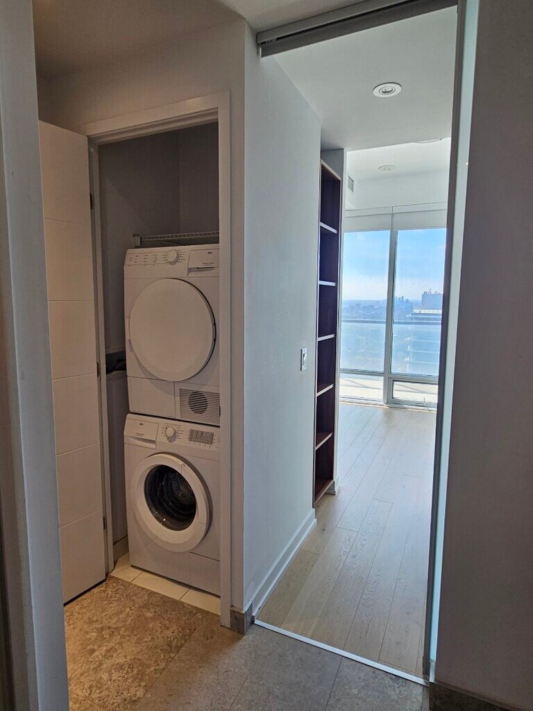 Welcome to Suite 5102 at 488 University Avenue, a rare corner residence in one of Toronto's most iconic towers. This meticulously upgraded 2+1 bed, 2 bath suite spans over 1,000 sq ft plus an oversized 8' deep balcony, with unobstructed 270 views of the city, lake, and Queens Park from the 51st floor. Sophisticated and smart, the home is equipped with Lutron dimmers (remote-ready), motorized roller shades, and custom lighting. Soaring 10 ft ceilings, floor-to-ceiling windows, and architectural concrete pillars elevate the ambiance. The kitchen features ToughSkin-protected quartzite countertops, state-of-the-art appliances, a warming drawer, dual-zone wine fridge, and built-in pantry. The primary bedroom boasts a fully built-out walk-in closet and an exquisite marble-clad ensuite with Kohler digital rain shower, body sprays, freestanding soaker tub, and an in-mirror TV with sound system. The second bedroom includes a custom Murphy bed/desk, while the den serves as a bright workspace or reading nook. Additional highlights include: Kohler fixtures, upgraded toilets, LED-lit mirrors, crown moulding, and premium trim. Enjoy valet parking, concierge, and world-class amenities: fitness centre, pool, rooftop terrace, lounge, and direct indoor access to St. Patrick Station. Steps to UHN hospitals, U of T, Financial & Entertainment Districts, Queen West, and more. A truly elevated lifestyle at one of Toronto's premier addresses. Inclusions: Stainless Steel/Integrated Appliances ~ Fridge, Stove, Microwave, Dishwasher, Wine Fridge. Washer & Dryer. Heating Is Included. Hydro & Water Are Extra (Tenant Responsible For Payment). Valet Parking Is Available For An Additional Fee.