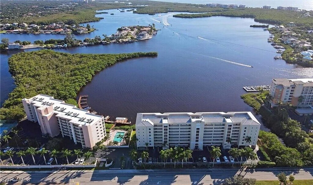 2027 SEASONAL MONTHS AVAILABLE: $8,500/Mo (Dec,Jan,Mar,April) Off Season or Annual: $5,695 This stunning top floor,end-unit WATERFRONT Penthouse boasts 3 bedrooms & 2 bathrooms with water views from all 3 sides of windows and higher ceilings than all the lower floors. Recently completely repainted and tastefully renovated,this unit comes beautifully furnished with all new furniture by an interior designer and full wall mirrors to showcase Florida's coastal living vibe with its neutral tones and colorful accents. Just a short 4 blocks to the beautiful,white sandy Gulf of America beaches,this rarely available condo screams beach living with an abundance of natural light,magnified by the newly installed wall of mirrors in the great room,and great exposure all day to the sunrises and sunsets,as well as watching the dolphins and manatees play in the bay water right below your main living and kitchen. Beautiful neutral wood-like tile throughout,impact glass sliders/windows. Impeccable water views from all 3 bedrooms,one guest room has a custom queen size Murphy Bed. There is direct Gulf access from the many available community boat docks + kayak launch. Ample guest parking below building. Enjoy the bayside pool,& walk to local restaurants,Coconut Jacks or Docs Beach House on the sand. Upgrades to building include keyless entry,beautifully refurbished pool,elevator,relaxing community room on 1st floor & lobby.