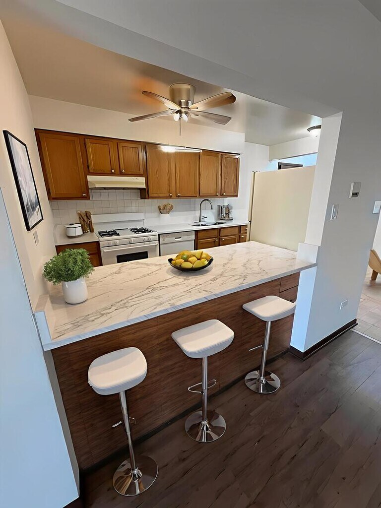 Bright and spacious 3rd-floor apartment in a prime Wheeling location,directly across from a scenic park with walking paths and open green space. This beautifully maintained,quiet,family-friendly building features hardwood/laminate floors,vaulted ceilings,and generous closet space,including a large walk-in closet. Enjoy natural light pouring through vertical blinds on all windows and a private balcony perfect for morning coffee or evening sunsets. The large eat-in kitchen is great for gatherings,and the 1st-floor laundry room and additional private storage add convenience. Two assigned parking spots,one in front and one across the building,and easy access to sidewalks,mature trees,and open space. Just 5 minutes to the Metra station and close to Downtown Wheeling's shops and restaurants. Utilities (water,gas,and heat) are included. Don't miss out on this rare opportunity to live in one of Wheeling's most desirable areas! MLS# MRD12478553 Based on information submitted to the MLS GRID as of [see last changed date above]. All data is obtained from various sources and may not have been verified by broker or MLS GRID. Supplied Open House Information is subject to change without notice. All information should be independently reviewed and verified for accuracy. Properties may or may not be listed by the office/agent presenting the information. Some IDX listings have been excluded from this website. Prices displayed on all Sold listings are the Last Known Listing Price and may not be the actual selling price.