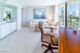 On the Beach! This ground floor end unit in the Meridian Club at Park Shore has spectacular views of beautifully manicured lawns and swaying palm trees leading you directly down to the beach and the turquoise waters of the Gulf of Mexico! This stunningly bright 2 Bedroom/2 Bath home has a large great-room floor plan,a gorgeous kitchen,spa-like bathrooms,and floor to ceiling windows to capture the extraordinary tropical scenery. The Meridian Club offers its own amenities including a fitness room,library,community pool/spa with grilling area,and is also ideally located close to the luxurious dining and shopping venues of Venetian Village.