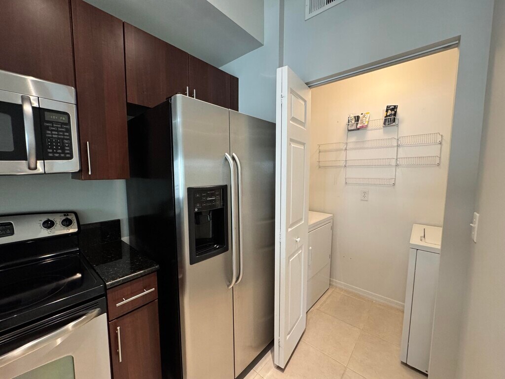 Annual Lease - ONLY Well-maintained 1-bedroom apartment in a desirable gated community. Features include stainless steel appliances, granite counters, full-size washer and dryer, and a private patio overlooking a quiet courtyard. Water included in rent. New carpet will be installed. Located on the second floor, just steps from the assigned parking spot on the top deck of the garage. Enjoy access to a clubhouse, heated pool, fitness center, tennis court, media room, business center, and more. Walking distance to shops, restaurants, and The Fresh Market. For a Private Showing Call Palm Beach County Home Pros or Email us and we will send you details Not List Agent, Not List Agent Courtesy of Realty ONE RE Move in Requirements: Credit Check First/Last/Security to move in Listing posted by Scott Ferguson [SYNDID 4114980 10232025]