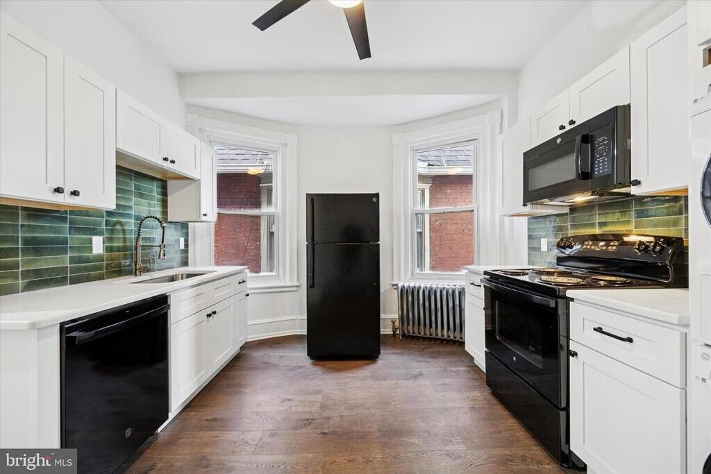 Freshly updated and full of charm, this bright and versatile apartment sits on a beautiful tree-lined block in a grand Victorian triplex just off Baltimore Avenue in West Philly. Fully renovated in 2020, this spacious apartment offers a thoughtfully designed layout with an open-concept kitchen, dining, and living area in the rear of the building. The kitchen is a showstopper — white shaker cabinets paired with a stunning green tile backsplash and open shelving, quartz countertops, and stainless steel appliances including a flat glass-top convection range, dishwasher with third rack, and a brand-new refrigerator. The Kraus sink with built-in filtration means you can skip the Brita pitcher altogether. At the front of the home, the sunny bedroom features a huge bay window and beautifully refinished original hardwood floors. There’s also in-unit laundry tucked conveniently within the bedroom. The bathroom feels like a spa retreat with its classic clawfoot tub, large window, and a separate vanity area with dedicated lighting and mirror — perfect for getting ready without crowding the main sink space. Large windows throughout the apartment fill the space with natural light from every angle. Water and a Bennett Compost subscription are included in rent; tenants cover electric, gas, and internet/cable. Located just off Baltimore Avenue, you’ll have some of the best neighborhood favorites right around the corner — Carbon Copy, Cleo Bagels, Dahlak, Mariposa Co-op, Loco Pez, and so many more. Quick trolley access gets you into Center City in minutes, and several bus routes serve the area as well. Whether you’re affiliated with Drexel, Penn, or CHOP, or simply looking for a charming home base away from downtown, 4922 Hazel Avenue offers the perfect mix of character, comfort, and convenience. Schedule your tour today!