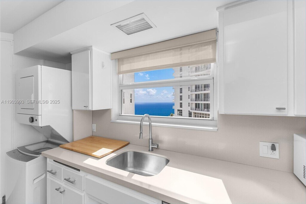 Step into coastal luxury in this fully furnished modern condo with spectacular views of the intracoastal and downtown Miami skyline. Features include tile floors, high ceilings, and an abundance of natural light, creating a serene and inviting ambiance. Residents can enjoy the convenience of a washer and dryer in the unit, as well as a host of resort-style amenities including a refreshing swimming pool with chairs & umbrella, and a state-of-the-art fitness center. This oceanfront property is nestled within a prime location on Collins Avenue with direct beach access. 24/7 secured lobby attendant and valet. This rental includes the following: basic cable, basic internet, electricity, water, trash, and 1 parking space. Complete convenience for the future resident to enjoy the lifestyle of Miami Beach. Available for minimum 6 months+1 day lease or yearly. MLS # A11933674