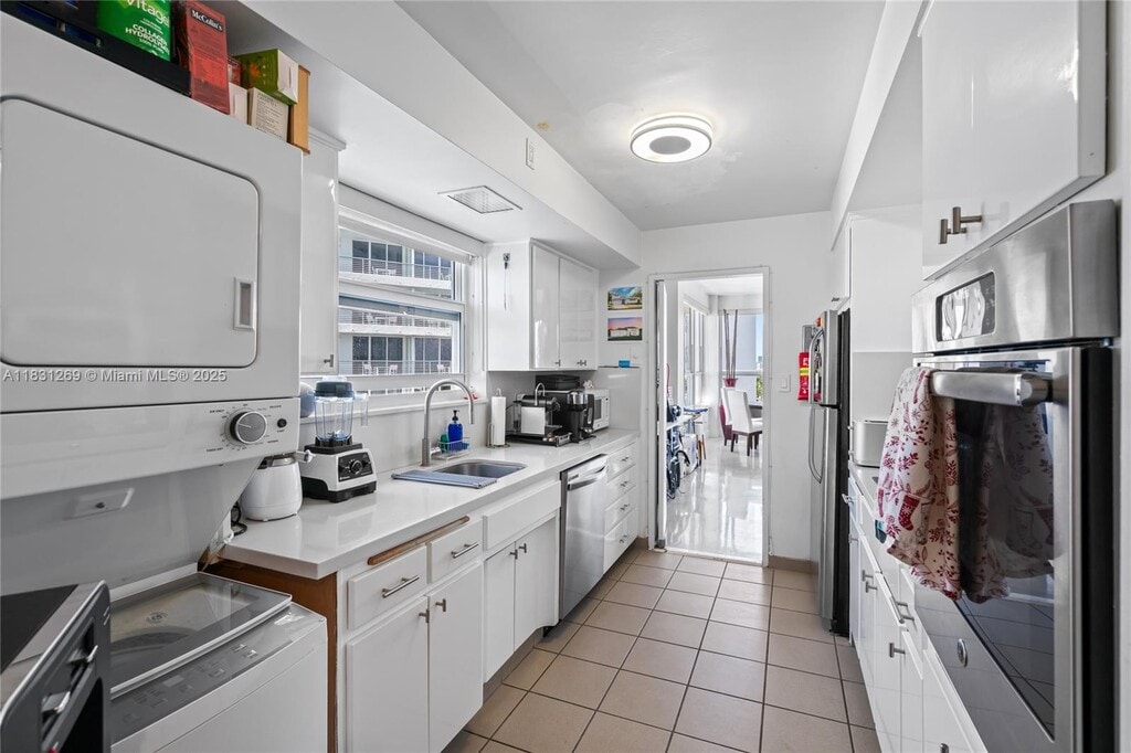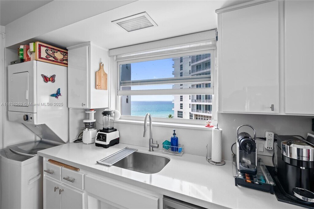 Available for seasonal or long-term rental - Spectacular oceanfront studio unit in the unique Mimo-syle boutique building, the Executive Condo. This fully furnished unit offers direct beach & ocean views, w/ large impact windows to let the bright sunshine in. Unit was just updated with new flooring, WASHER & DRYER in-unit & freshly painted walls. It includes tons of storage space including built-out closet space & cabinets, as well as a brand-new Queen-sized bed, dining room set & comfortable sleeper sofa. If you have dreamed of living with views of the beach & ocean, this is one of the best deals out there! Plus you get to live in one of the city's most unique, desirable and delightful buildings! 1 assigned parking space not included with rent but available for add'tl $70/m.
