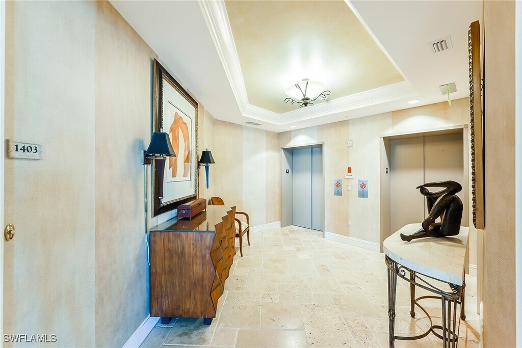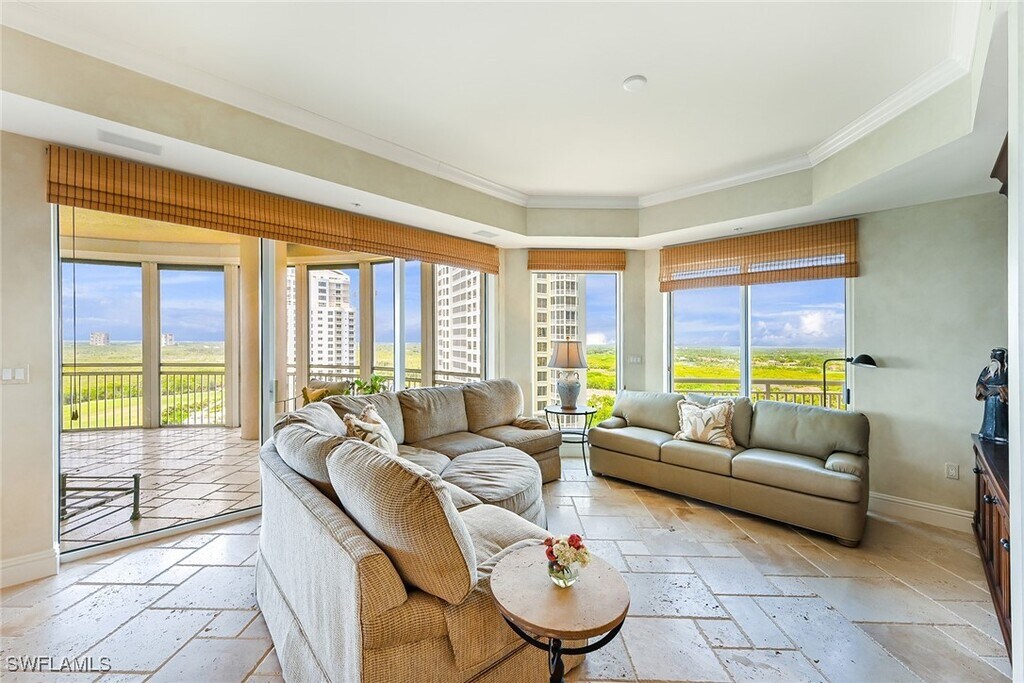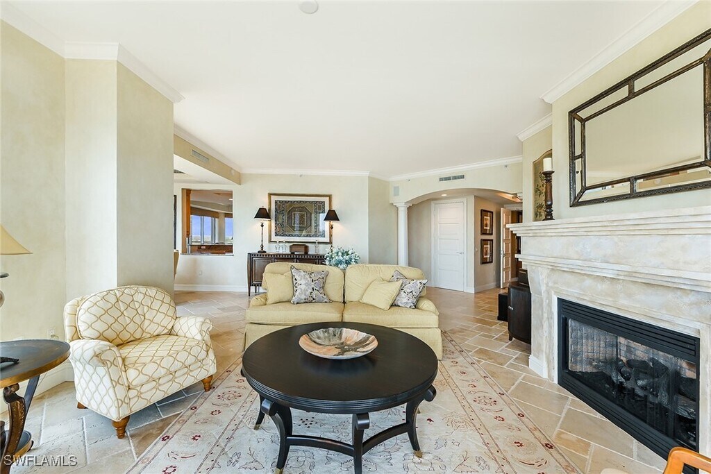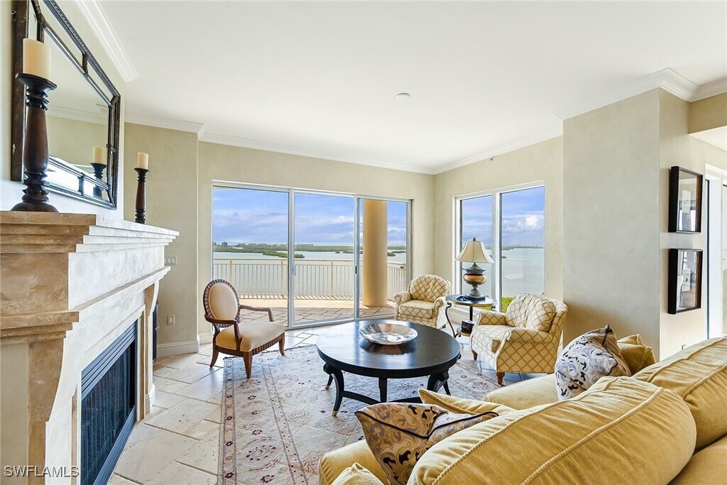 Sweeping panoramic views of the Gulf of Mexico and Estero Bay can be seen from this 7th floor,End Unit,high-rise luxury condominium. Secured elevator with private foyer opens to this superbly finished 3 bedroom plus den,3.5 bath residence with a spacious open floor plan that boasts more than 4,200 square feet of generous living spaces with living and family rooms. Stunning decor and exceptional features throughout,including large picture windows,floor to ceiling sliding glass doors,gas fireplace,marble flooring,granite counter tops,and a gourmet kitchen complete with a large center island,gas cooktop,Wolf double wall over,wet bar with wine refrigerator. Entertain family and friends on the expansive balcony or the screened in lanai complete with built-in gas grill. Private enclosed two-car garage adds to the privacy and convenience this residence has to offer. This is Florida living at its best! Azure is one of Bonita Bay's premier residential towers and provides its residents with the finest in luxury living. Amenities include a roof top terrace with bar/TV,theater/media room,large heated infinity pool and spa,fitness center with men's and women's steam and massage room,billiards and multipurpose club room,cabana with fireplace,guest suites,under building garage parking,on site manager and more. Bonita Bay is an award-winning gated community,where one-half of the 2,400-acre community is devoted to golf courses,parks,preserves,natural areas,and other open spaces. Enjoy the 12 miles of walking/bike paths,partake in the community’s many social activities,or take the shuttle to Bonita Bay's private beach park on Bonita Beach for a day of sun and surf. The Bonita Bay Beach Club provides lounge chairs,restroom/showers,charcoal grills and gazebo with picnic tables and can be accessed by tram provided by Bonita Bay. Additional community amenities include a Marina with boat docks available for rent,casual waterfront dining at Backwater Jack's and three waterfront recreational parks that feature canoe & kayak launches,picnic areas,lighted tennis courts,fishing piers,children's playground,pavilions,butterfly park & boardwalk to Estero Bay.