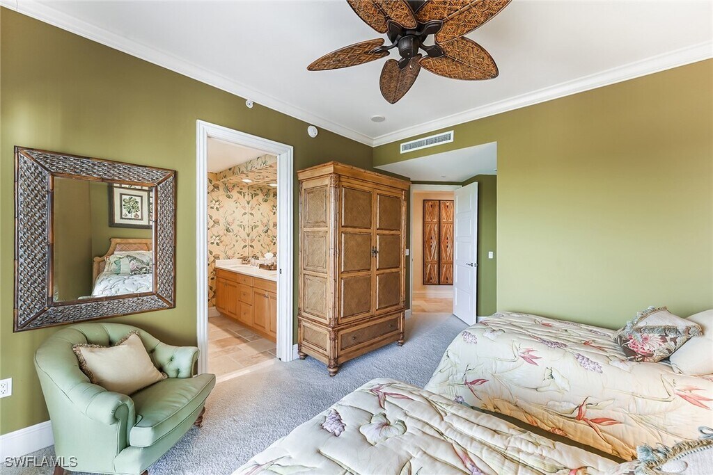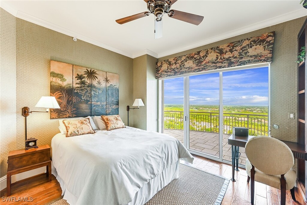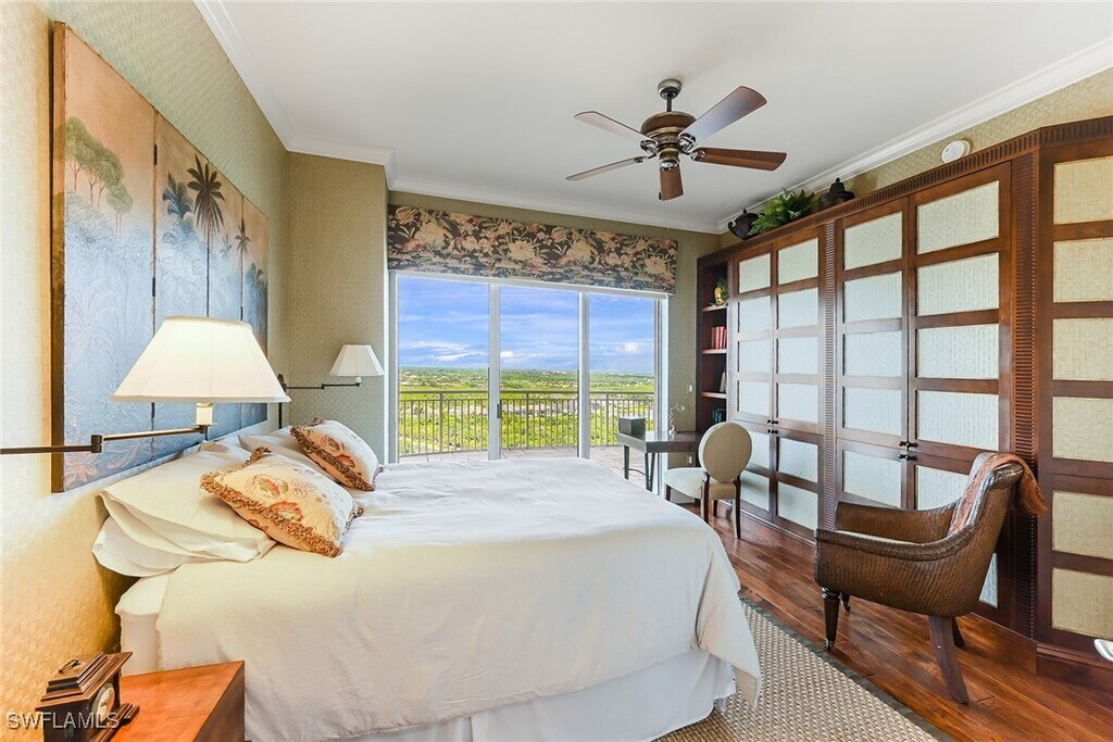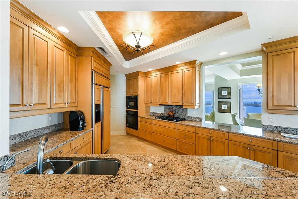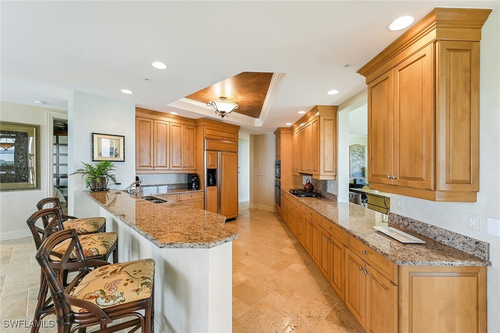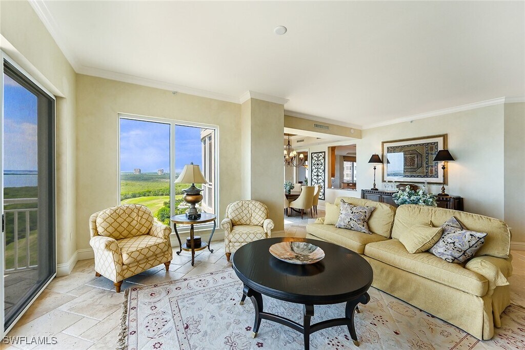 Imagine seeing the Gulf,bay,golf course and twinkling city lights all in one view! Three terraces and large sliding glass doors frame breathtaking views in all directions. This elegant yet comfortable 3,566 square foot condominium has travertine floors throughout the formal living area and dining room. The two carpeted primary Suites are both fitted with King size beds (one can be converted to two twin beds.) One primary bathroom has a water closet with a bidet,dual vanities and a soaking tub with a separate shower while the other ensuite bath offers a walk-in shower. A third guest room offers a queen bed and an adjoining bath,and there is also a sofa bed in the family room. Enjoy cooking in the gourmet kitchen offering plenty of cabinet and countertop space,a gas cooktop and a counter bar that opens to the eat-in area and family room OR cook on your own built in gas grill located on your screened lanai. Azure amenities include a resort style heated pool and spa,a screened Cabana Bar with a fireplace and TV,Theater Room,Fitness Center,Guest Suites,an On-Site Manager and more. Bonita Bay is an award-winning guard-gated golf course community with parks,preserves,and beautiful natural landscaping surrounding the 12 miles of walking/biking paths. There is also a marina with boat docks available to rent,waterfront dining,and three waterfront parks that feature canoe & kayak launches,picnic areas,fishing piers,boardwalks and playgrounds.