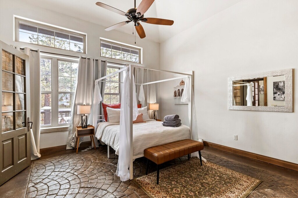 The advertised rate of $7,464/month is the lowest available price, based on a 30 day(s) stay with a move-in date of May 12, 2026. Rates vary depending on the duration of stay, season, and other parameters. For exact pricing and additional pricing components, please visit our website and enter your desired move-in and move-out dates. The rate is applicable when billed upfront; it can be higher if billed in multiple payments. Feel at home in this elegant retreat, perfectly located for Arizona Snowbowl, Grand Canyon day trips, and downtown Flagstaff. Set on a serene 2.5-acre estate with stunning San Francisco Peaks views. This home features heated floors, a chef’s Viking kitchen, and a master suite with a clawfoot tub. The fully equipped kitchen includes a Keurig coffee maker, blender, toaster, ice maker, and reverse osmosis water filtration system. Enjoy access to Starlink high-speed Wi-Fi and smart TVs. There is an outdoor seating area, a propane grill, and a swing set. Dogs are allowed (2 pet max, under 50 lbs) with a $50 pet fee per dog. Nearby attractions include Downtown Flagstaff (~10 minutes), Riordan Mansion State Historic Park (~10 minutes), Lowell Observatory (~15 minutes), Arizona Snowbowl (~20 minutes), Walnut Canyon National Monument (~25 minutes), Sunset Crater Volcano National Monument (~30 minutes), Wupatki National Monument (~45 minutes), Sedona (~1 hour), and Grand Canyon National Park (South Rim) (~1 hour 30 minutes). Dogs are not allowed on furniture or beds; extra fees will apply if hair is found on furniture or bedding. Do not leave dogs unattended under any circumstances. Smoking is not allowed indoors or outdoors. Parties are strictly prohibited. Please have 4x4 in winters to avoid sliding as there can be a lot of snow on roads and driveway. If the hot tub is unplugged in winter, the fine is the cost of a new hot tub because the water will freeze. The indoor fireplace is not part of the amenities provided and will not be available for use during your stay. [SI]
