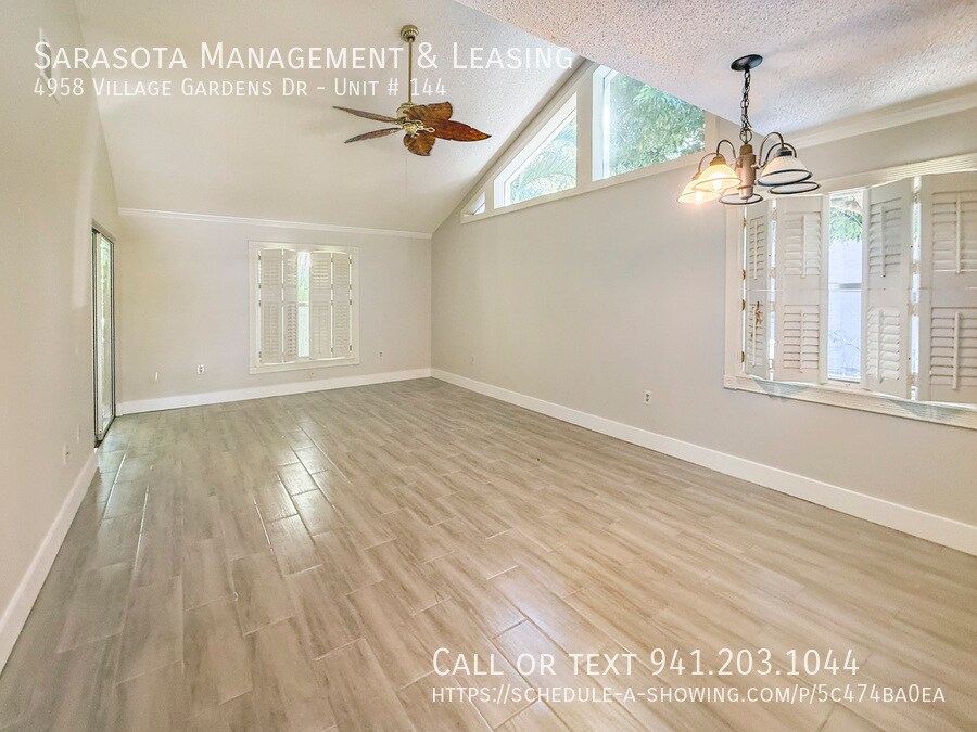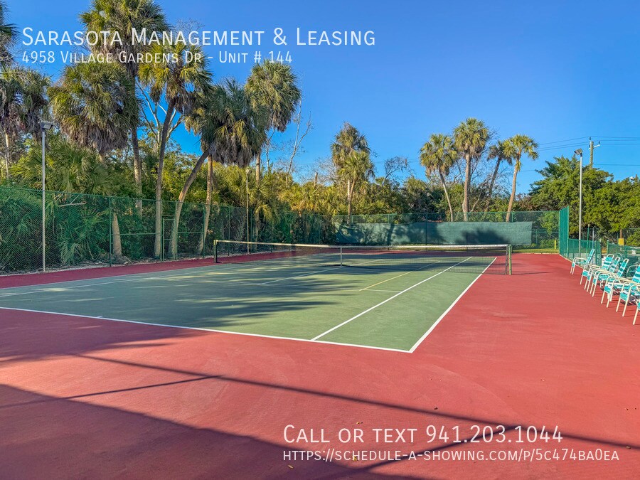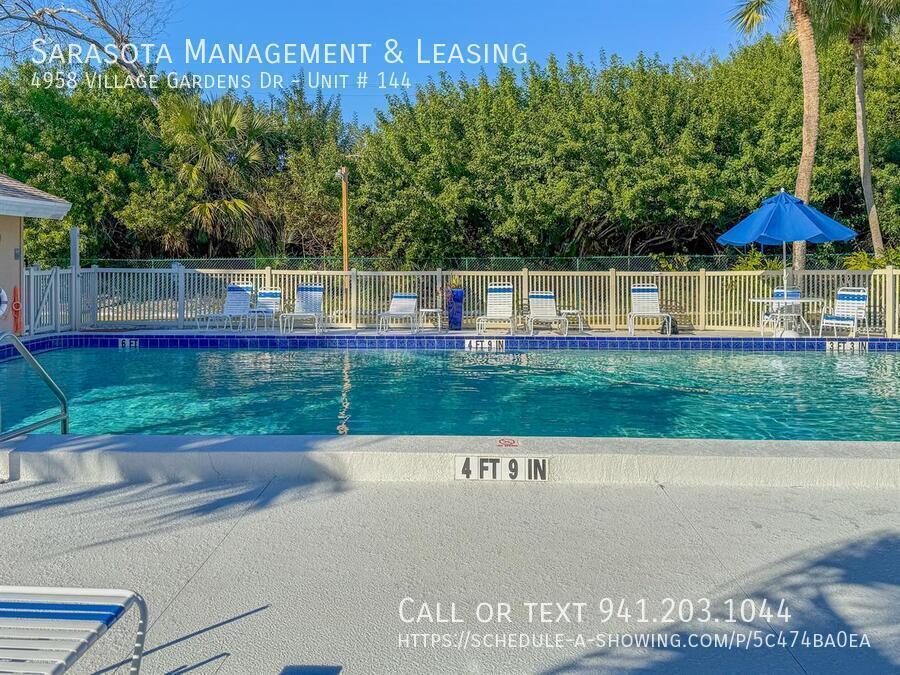 This is a 2 bedroom 2 bath Villa in the Village Gardens community! This home features a convenient floorplan with quick access to any room in the home. Just inside is the recently updated kitchen which features stainless steel and black appliances, beautiful granite countertops, a pass-through window to the dining area, and a windows that allow for plenty of natural light. Just beyond the kitchen is the combined dining and living area. The living room features sliding glass doors to the enclosed patio. The master bedroom also has sliding glass doors to the patio and an ensuite bathroom. The master bathroom has a dual sink vanity and beautifully tiled shower. There is also a spare bedroom and a spare bathroom with a walk in shower. The enclosed patio features a wall of sliding doors that allow for plenty of natural light. The laundry closet is located in the hall near the spare bedroom and includes a washer and dryer. The backyard has lots of mature trees and landscaping. This community has a clubhouse with a pool, tennis, shuffleboard, and a full kitchen. The community is located not far from the airport, the Ringling Museum, the intracoastal waterway and beyond that is Downtown Sarasota. The community does not allow commercial vehicles, trucks of any kind (including pick-up trucks with covered, enclosed, or open beds), campers, motor homes, trailers, motorcycles (two and three wheeled), motor scooters, motorbikes, mopeds, gas-powered bikes, boats, or boat trailers. Please allow up to 3 weeks after lease signing for community approval before move-in. We score every application. If an application doesn’t score high enough, the resident may be required to place the equivalent of two months’ rent in a security deposit. Please be aware that leasing this property includes a non-optional Home Assistant Services Package that will cost an additional $30 per month. These services and their cost are separate from Tenant’s monthly rent payment and all other payments described in the Lease or any separate Lease addendums. The Home Assistant Services offered are described in the Resident Welcome Packet which can be viewed here: 2 Pets Max, 40 lbs Max, Dogs with Breed Restrictions Airport, Intercoastal Waterways, Ringling Museum, Shopping, Restaurants Sarasota County Schools 1 Car Carport Update Kitchen, Stainless Steel and Black Appliances, Granite Countertops, Pass-Through Window Combined Living and Dining Area Clubhouse, Pool, Tennis, Shuffleboard Garbage included Clubhouse Community Pool Enclosed Porch Tennis Courts