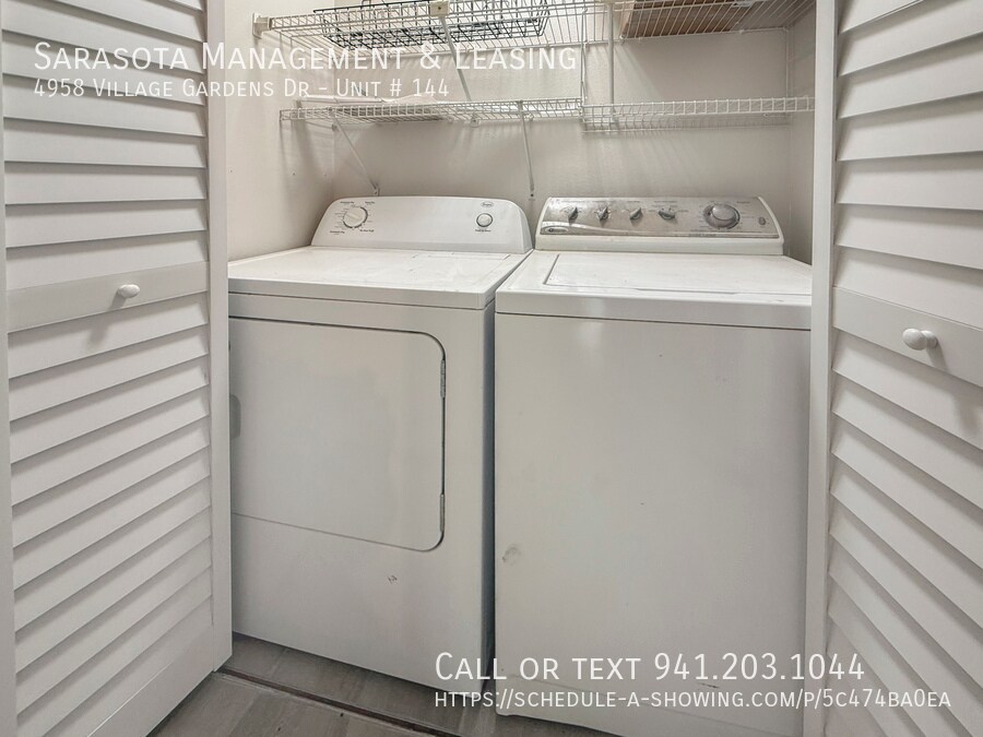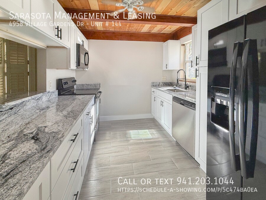 This is a 2 bedroom 2 bath Villa in the Village Gardens community! This home features a convenient floorplan with quick access to any room in the home. Just inside is the recently updated kitchen which features stainless steel and black appliances,beautiful granite countertops,a pass-through window to the dining area,and a windows that allow for plenty of natural light. Just beyond the kitchen is the combined dining and living area. The living room features sliding glass doors to the enclosed patio. The master bedroom also has sliding glass doors to the patio and an ensuite bathroom. The master bathroom has a dual sink vanity and beautifully tiled shower. There is also a spare bedroom and a spare bathroom with a walk in shower. The enclosed patio features a wall of sliding doors that allow for plenty of natural light. The laundry closet is located in the hall near the spare bedroom and includes a washer and dryer. The backyard has lots of mature trees and landscaping. This community has a clubhouse with a pool,tennis,shuffleboard,and a full kitchen. The community is located not far from the airport,the Ringling Museum,the intracoastal waterway and beyond that is Downtown Sarasota. The community does not allow commercial vehicles,trucks of any kind (including pick-up trucks with covered,enclosed,or open beds),campers,motor homes,trailers,motorcycles (two and three wheeled),motor scooters,motorbikes,mopeds,gas-powered bikes,boats,or boat trailers. Please allow up to 3 weeks after lease signing for community approval before move-in. We score every application. If an application doesn’t score high enough,the resident may be required to place the equivalent of two months’ rent in a security deposit. Please be aware that leasing this property includes a non-optional Home Assistant Services Package that will cost an additional $30 per month. These services and their cost are separate from Tenant’s monthly rent payment and all other payments described in the Lease or any separate Lease addendums. The Home Assistant Services offered are described in the Resident Welcome Packet which can be viewed on our website at Sarasota Management. MLS# A4682410