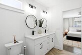 Enjoy the best of Atlanta living in this beautifully reconstructed **3-bedroom, 2-bath home located in the desirable Capital View Manor neighborhood**, just minutes from the BeltLine and convenient to Downtown Atlanta. This thoughtfully designed home combines modern style with the charm of a traditional neighborhood setting. Step into the spacious great room where the open living and dining areas create a comfortable environment for relaxing, entertaining, or working from home. The open-concept kitchen features a large island, modern finishes, and ample counter space—perfect for preparing meals or enjoying casual dining. The hallway leads to a conveniently located laundry area and two generously sized secondary bedrooms. The primary suite offers a private retreat with a **modern walk-in shower, double vanities, and a spacious walk-in closet**. Throughout the home, you’ll find **beautiful dark-finished solid hardwood flooring**, while the bathrooms showcase stylish modern tile finishes
