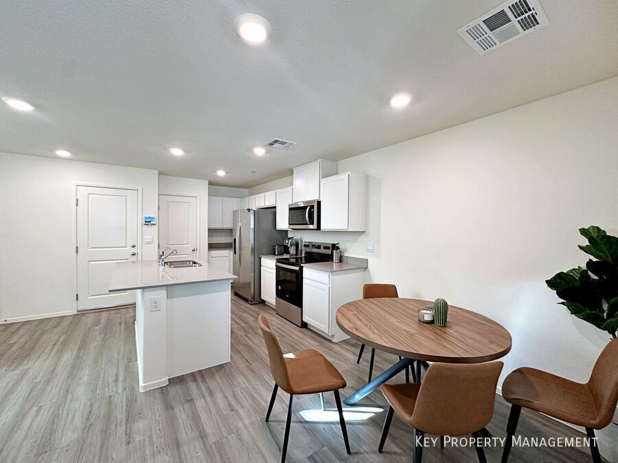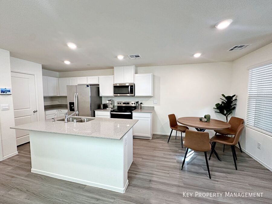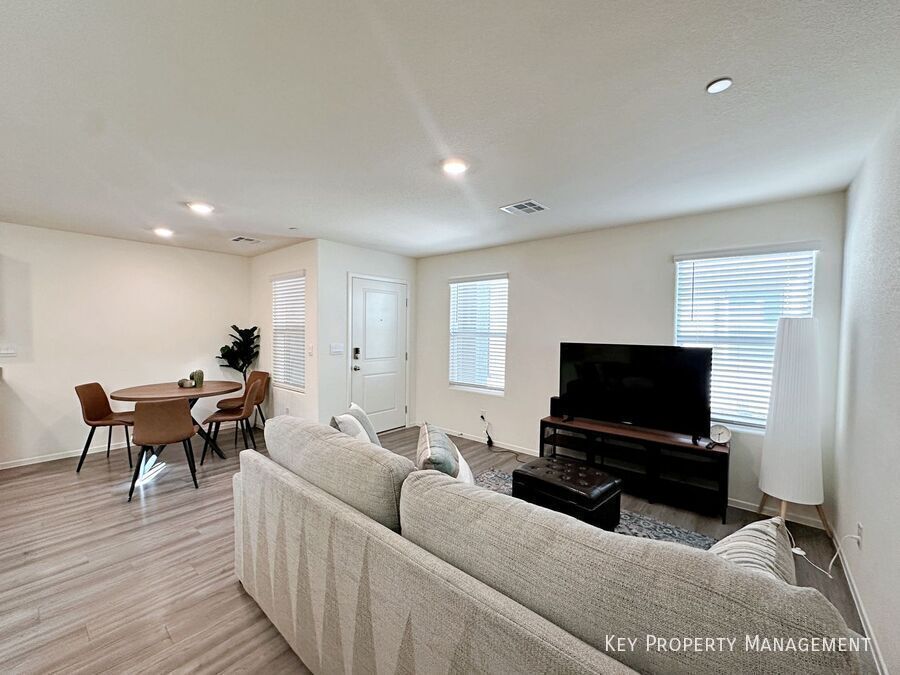 NEWER BUILT FURNISHED TOWNHOME IN SOUTHWEST LAS VEGAS * 3 BEDROOMS * 2.5 BATHROOMS * 2 CAR GARAGE * OPEN CONCEPT FLOORPLAN * MODERN KITCHEN WITH ISLAND * STAINLESS STEEL APPLIANCES * QUARTZ COUNTERTOPS * WHITE CABINETRY * PANTRY * ALL APPLIANCES INCLUDED * SPACIOUS PRIMARY SUITE * UPSTAIRS LOFT/FLEX SPACE * UPSTAIRS LAUNDRY * COMMUNITY POOL * SMALL DOG OK * RESIDENT BENEFITS PACKAGE INCLUDED * NEAR SHOPPING * DINING * PARKS * CASINOS * FREEWAY ACCESS