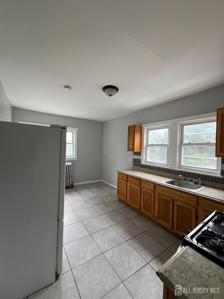 Now available for immediate occupancy is a spacious 3-bedroom,1-bath apartment occupying the entire 2nd floor of a two-family home at 498 Norwood Street in East Orange. Flooded with natural light,this large residence features high ceilings,oversized windows,and wood-style flooring throughout the bedrooms and living areas. A long private entry hallway leads to generously sized rooms,all freshly painted in modern gray tones. The eat-in kitchen offers ample cabinetry,expansive granite countertops,and comes equipped with a full appliance package,including a gas stove and refrigerator. The tiled bathroom includes a full tub/shower combination,and multiple closets throughout provide excellent storage space. Located on a quiet residential block near Bloomfield Avenue,this apartment delivers convenient access to NJ Transit buses,shopping,schools,parks,and major routes for commuting into Newark or NYC. Qualified applicants should be prepared with standard income and background documentation.