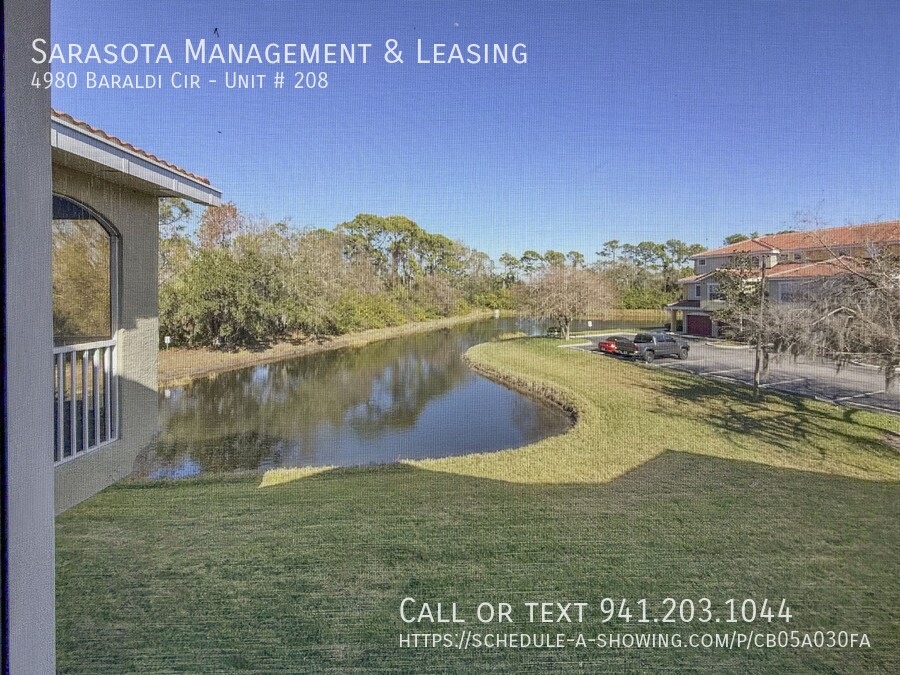Large Two Bedroom Two Bath Luxury Condo with garage in the Spacious 100+ acres Gated Community of Las Palmas near UTC Mall, shopping, and restaurants! This unit has a lake view and also has an attached 1-car garage! This multi-level condo places the master suite on the upper floor complete with an attached bath with a garden tub and large closet for storage. The second level features kitchen with a pass-through window to the living areas along with lanai with lake views. It also has the spare bedroom, a spare bathroom with a tub / shower combination, and a hallway work cubby. Las Palmas of Sarasota has many amenities including two pool areas, one with a sauna and hot tub, a playground, 2 gym facilities, a playground and tennis courts. Located on the East side of Honore Avenue between University Parkway and Fruitville Road. Please allow up to three weeks from the date your application is approved until your move-in date for approval through the HOA. We score every application. If an application doesn’t score high enough, the resident may be required to place the equivalent of two months’ rent in a security deposit. Please be aware that leasing this property includes a non-optional Home Assistant Services Package that will cost an additional $39 per month. These services and their cost are separate from Tenant’s monthly rent payment and all other payments described in the Lease or any separate Lease addendums. The Home Assistant Services offered are described in the Resident Welcome Packet which is can be viewed here: No Pets allowed UTC Mall, Nathan Benderson Park, Restaurants, Shopping, I-75 Sarasota County Schools 1 Car Garage. Attached. Stainless and White Appliances, Pass-Through to Living Room Multi-Story, Open Floorplan, Upstairs Master Bedroom 2 community pool areas, 2 fully equipped gyms, Tennis courts Garbage included Clubhouse Community Pool One Car Garage Pest Control Included Screened Porch Tennis Courts Trees / Shrub Care Included Water Views