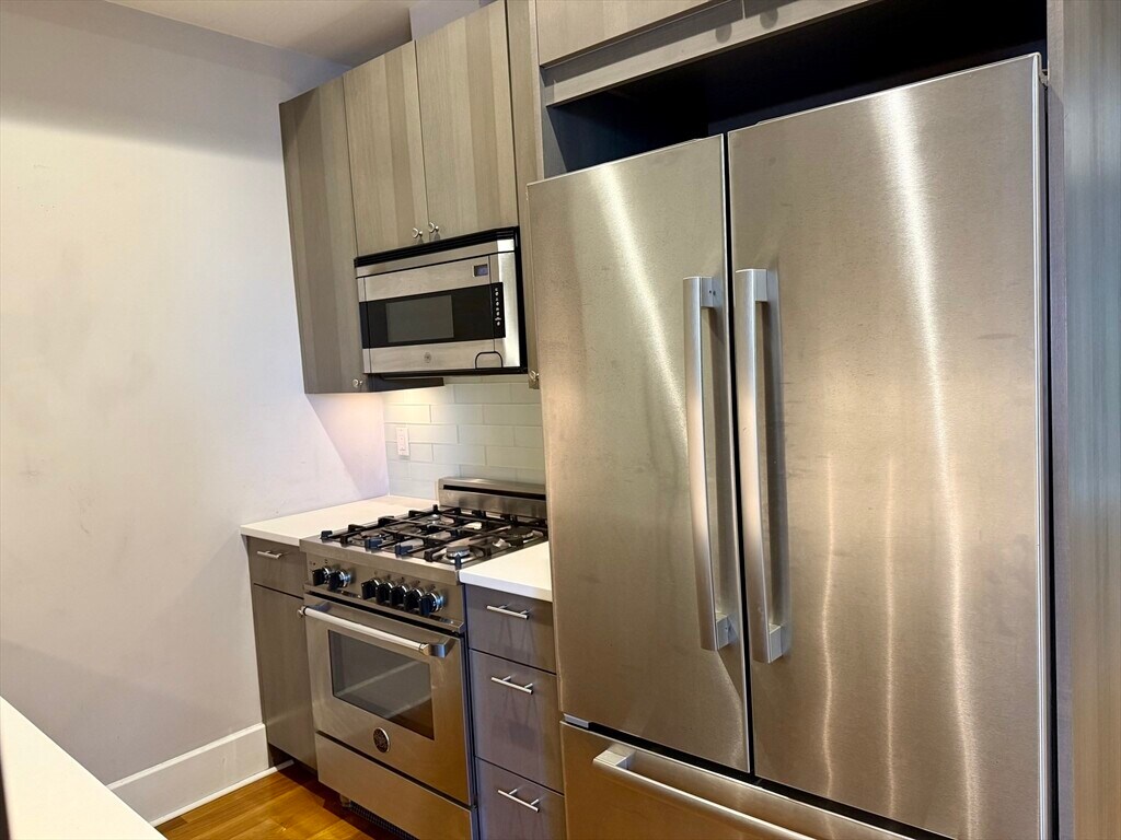 Iana Ulianova | CABOT AND COMPANY Must see one bedroom in South Boston. Newly constructed boutique building. Unit features very high ceilings and hardwood floors throughout. Great living room with gas fireplace and built in speakers. Chef's kitchen with high end appliances including gas cooking, quartz countertops, and custom cabinets. Large bedroom can easily fir a king size bed. Nice bathroom with large glass enclosed shower. Central Air, washer and dryer in unit, and tons of closet/storage space. Best of all, GARAGE PARKING w direct access. Amazing location steps to Andrew Sq T, highway, beaches, and many shops and restaurants. Available September 1