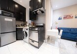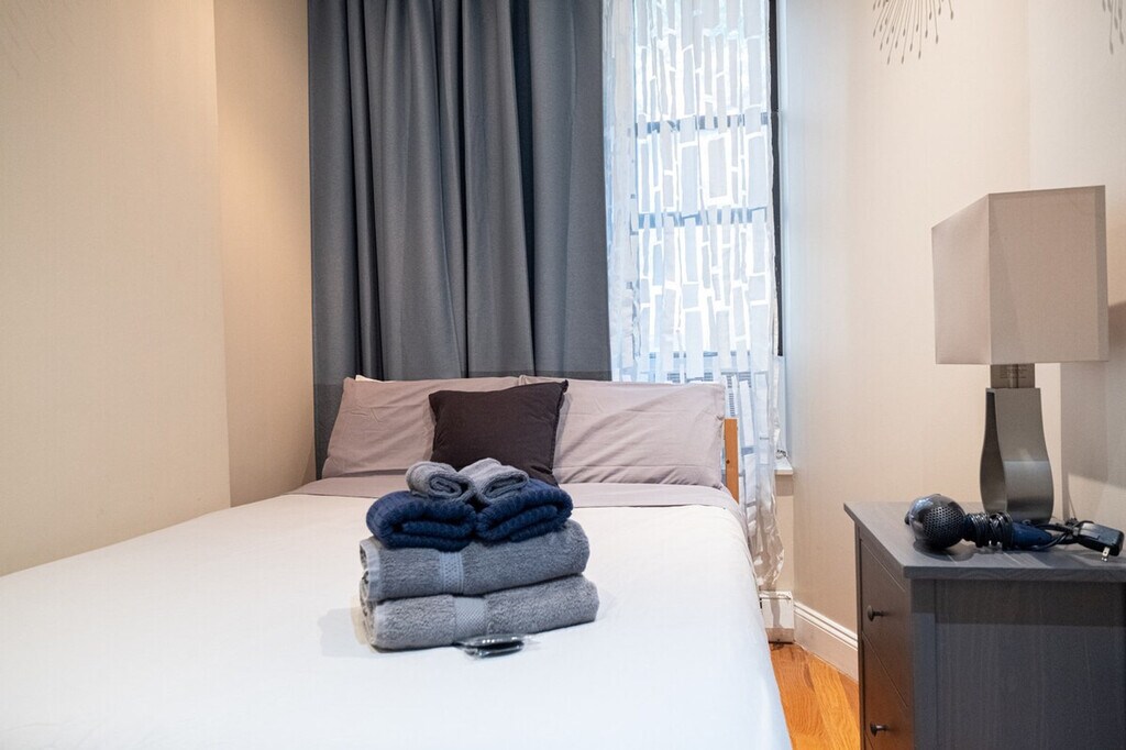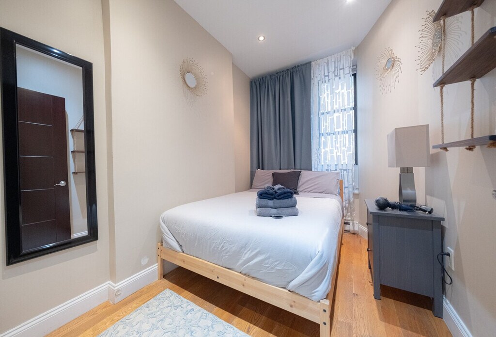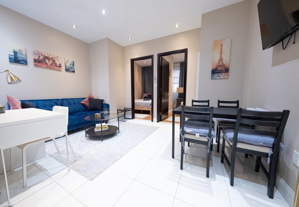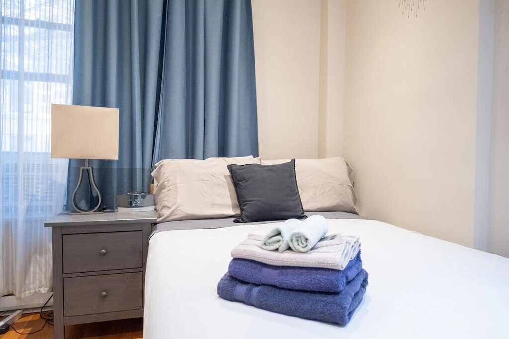 Feel at home in this fully furnished 2-bedroom apartment nestled between Central Park West and Manhattan Ave, offering easy access to mass transit via the B, C, and 1 lines and Whole Foods. Located on the first floor, this apartment provides convenience and comfort in a vibrant neighborhood. This beautiful 2-bedroom apartment is fully furnished and features super-fast internet at 500 Mbps. The kitchen is fully equipped with a large refrigerator, stovetop, oven, coffee maker, toaster, microwave, and all the utensils and cutlery you might need during your stay. Each bedroom has a full-size bed, closet, AC, and window. The marble bathroom includes both a shower and a bathtub. Enjoy the convenience of a washer in the apartment, free of charge. The living room is equipped with a dining table, convertible sofa, and desk. Wi-Fi at 500 Mbps and all utilities, including heat, hot water, and gas/electricity, are included. The Upper West Side is a leafy, residential Manhattan neighborhood often depicted in TV shows and movies. It's a place where you can frequently see families pushing strollers, walking dogs, and settling in for brunch at mainstays like Sarabeth's. The area is bracketed by Central Park and Riverside Park and is distinguished by regal, two-towered apartment buildings along Central Park West. The neighborhood offers culture, shopping, dining, and nightlife, with attractions like the American Museum of Natural History, the Beacon Theatre, and Lincoln Center for the Performing Arts. The apartment is just half a block from Central Park and a 2-minute walk from the subway station. Smoking inside or outside of the apartment will result in a $500 fine. Pets are not allowed. Luggage storage is not available, so please use a service like to store your luggage before check-in or after check-out. The building is safe, and all guests must respect quiet hours from 10 pm to 7 am. Check-out time is 11:00 AM, and guests are responsible for leaving the apartment in good condition. Mail cannot be received at this address, so consider opening a PO Box. Kindly note that a $350 refundable security deposit is required and will be collected directly by the partner after your booking is confirmed. The security deposit will be handled through direct communication with the partner and is not processed automatically. [SI]