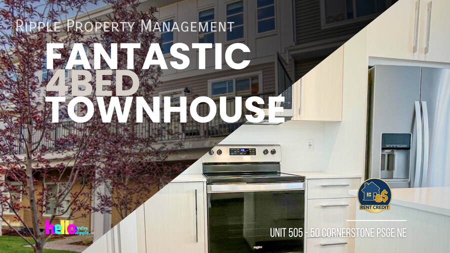 Modern 4 Beds, 2.5 Baths TownHouse | 1 Pet Allowed. 20lbs Max Welcome to your new home at 50 Cornerstone Passage NE - 505 - 505 — a modern and well-maintained 4 beds / 2.5 baths / TownHouse offering comfort, space, and convenience. Ideally located close to shopping, schools, parks, and transit. _____________________________________________________________ SHOWINGS: Conducted in an open-house format — book your appointment today! Prices, availability, and promotions are subject to change without notice. VIDEO TOUR: _____________________________________________________________ PROPERTY DETAILS: - Furnished or Unfurnished: Unfurnished - Pets: 1 Pet Allowed. 20lbs Max. $50 Monthly Fee - Smoking: Non- Smoking - Parking: Double Garage Attached - Storage Included: No - Laundry: In- Suite Laundry - Management Type: Full Management - Lease Term: Long Term _____________________________________________________________ UNIT FEATURES: - Living Space:Open-concept living room layout, perfect for relaxing or entertaining - Kitchen: Sleek and modern kitchen with all appliances for a contemporary look with plenty cabinet storage to keep everything organized - Dining Space: Open-concept design flowing into the living space, perfect for entertaining - Bedrooms: 4 Bedrooms featuring ample storage for clothing and accessories - Window Coverings: Includes window coverings for privacy and light control ____________________________________________________________ UTILITIES: - Utilities Included: No Utilities Included Here's a helpful tool you can use to get a rough estimate of utility costs. Just check out the link: _____________________________________________________________ LOCATION HIGHLIGHTS: - Outdoor Living: Nearby Parks, Pathways, Greenspaces - Transit & Access: Transit Lines / Major Roads Nearby - Family Friendly: Close to Schools, Childcare, Rec Centres - Local Conveniences: Groceries, Shops, Restaurants, Services Nearby Don't wait — properties like this don't last long. Book online today: