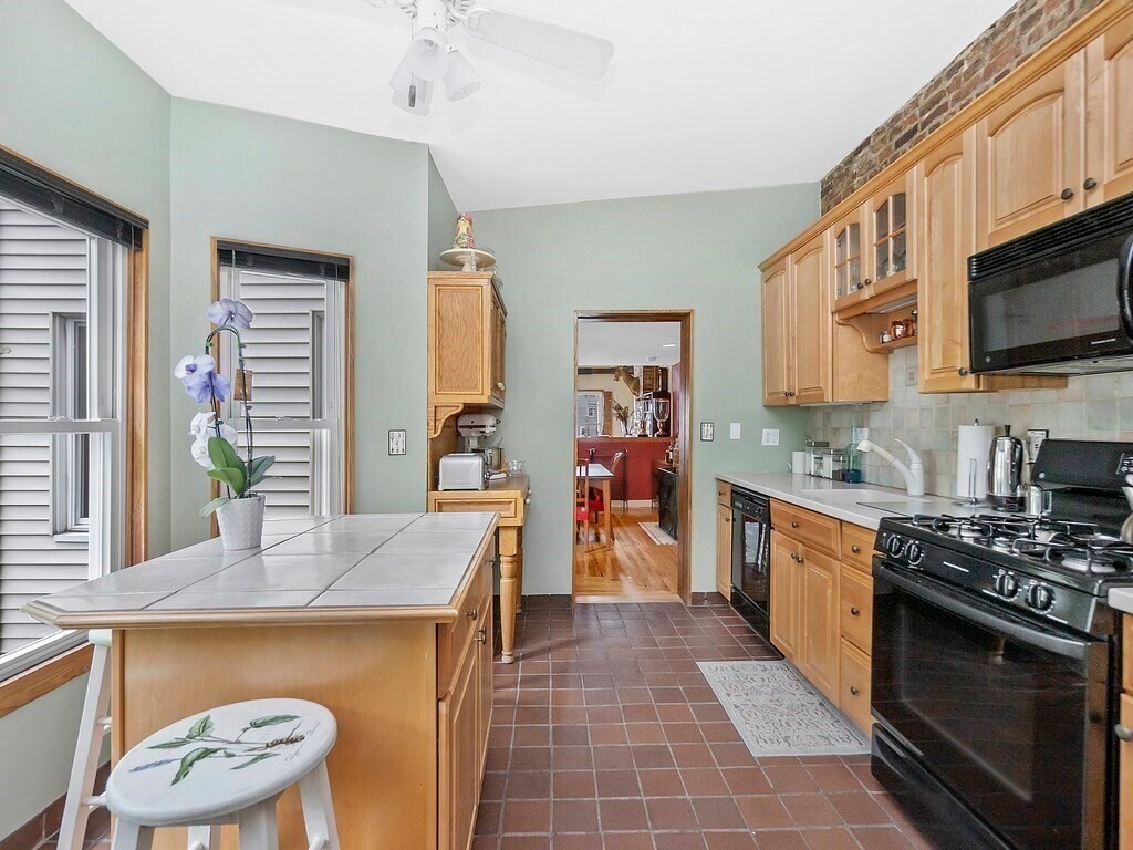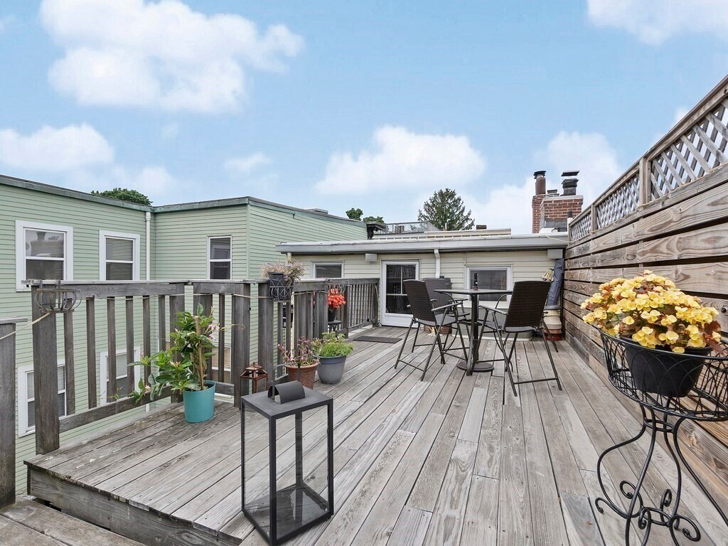 Airy,sunlight and spacious 2BD/2BA on two levels of living just three blocks from the Monument with 1 parking space. This upper duplex features towering ceilings,hardwood flooring,ample storage space plus one bathroom on each level. The first floor features an expansive great room with wood burning stove,formal dining room,eat-in kitchen,bedroom with closet and full bath. Upstairs find the master suite with large open bedroom area and ensuite bathroom. A deck,off this space,is the perfect place for cocktails,coffee or WFH. Enjoy laundry,many built-ins,crown moldings,crannies and above all else,lots of space. This apartment's layout lends itself to entertaining and will appeal to those who value storage options,location and light. Pet consider (1 or 2 cats or 1 dog) pending application. $50 additional per month. MLS# 73505181