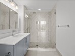 A rare opportunity to lease the only three-bedroom residence at Stadia 50, Boston Landing’s premier condominium address. This 1,500 SF single-level penthouse blends modern design with refined finishes, including a chef’s kitchen with Calacatta quartz countertops, custom cabinetry, Thermador and Bosch appliances, and a generous island. Wide-plank birch floors flow throughout the expansive open-concept layout, while the primary suite offers dual custom closets, a spa-like bath with Porcelanosa fixtures and quartz floating vanities, plus a double balcony framing breathtaking Boston skyline views. Two additional bedrooms provide flexibility for guests or a home office, and outdoor living is elevated with a massive private deck complete with a built-in Napoleon gas grill. Residents enjoy access to a fitness center, common roof deck, professional management, and the convenience of two garage parking spaces. Ideally located in Boston Landing, the home offers seamless access to the Commuter Rail, Mass Pike, New Balance HQ, and some of the neighborhood’s best cafés and dining.