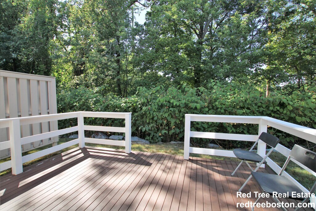 This townhouse is located on the Newton/Brighton line, on quite street very close to MBTA and BC with views on the Commonwealth Golf Course. Property is spacious with central air conditioning, granite counter tops, dining area, hardwood floors on first floor, and new private deck for BBQ. Two-and-a-half bathrooms, master bedroom, and huge bedroom on second floor, and loft style third bedroom on the third floor. Laundry room on the first floor.
