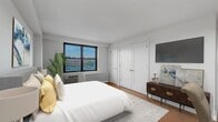WELCOME HOME... Luxury Living with Direct views of the Manhattan Skyline. Brand new modern renovation of spacious One Bedroom with sweeping views of Manhattan. An upgraded galley styled open kitchen complete with quartz countertops and stainless-steel appliances. Bedroom features double closets and ample storage. Large tiled modern bath. Walk into an expansive Living/Dining open concept area with a wall of windows. Best of all this unit features 6 CLOSETS. Rent includes heat, hot water, & cooking gas, use of the Fitness Center & Residence Lounge. The building offers a 24hr doorman, shuttle service Hoboken Path. Located in a vibrant part of the city, neighboring Jersey City Heights and Hoboken, the convenience and location only add to the appeal of the unit. Step out and visit Washington Park or a short walk over to Trader Joes. Come see luxury living at an affordable price.