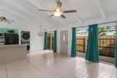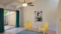 Beautifully renovated 2-bedroom, 1-bath condo filled with natural sunlight from clerestory windows and vaulted ceilings. The open floor plan is ideal for everyday living and entertaining, featuring a brand-new kitchen with solid wood cabinetry, slab granite countertops, custom tile backsplash, and stainless steel appliances. The living room includes built-in cabinetry and an electric fireplace, and the primary bedroom also offers custom built-in cabinetry for added style and storage. This home offers both a private fenced courtyard at the front entry and an open patio in the back—perfect for relaxing or enjoying the outdoors. The flooring has been upgraded throughout with tile—no carpet—and a brand-new washer and dryer are conveniently located inside the unit. The sparkling community pool is just a short stroll away. Excellent location close to shopping, dining, downtown Sarasota, and the beautiful Gulf beaches. Don’t miss your chance to enjoy your time in paradise! NOTE: This community is governed by a homeowners association. Approval may include an application, background screening, fees, and an approval process. Contact the agent for details.
