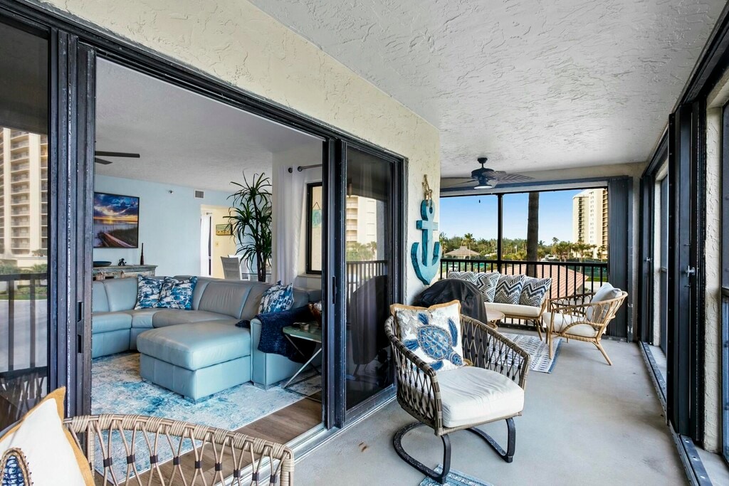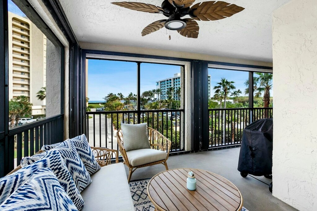 **Direct Oceanfront Community** Available February-April 2026. Located at the beach in Jupiter, this beautifully renovated 2nd floor residence is located steps to the beach, pool & tennis courts. Light & bright condo offering 2 large bedrooms, 2 renovated baths, custom kitchen with quartz countertops & stainless steel appliances, plantation shutters & tiled floors. Relax on the screened wrap-around porch while listening to the sounds of the Ocean & experiencing amazing sunrises. Walk miles of beach, fishing on the jetty at the Jupiter Inlet, pool, hot tub, tennis, pickle ball, fitness center, 24-hr manned gate. Golf next door at Jupiter Dunes GC. Walk to numerous waterfront restaurants & shops. A perfect beach retreat in a lovely resort setting in the sand on Jupiter Beach.
