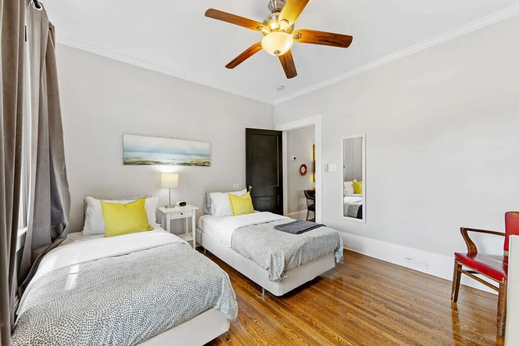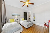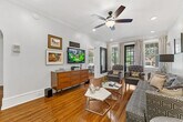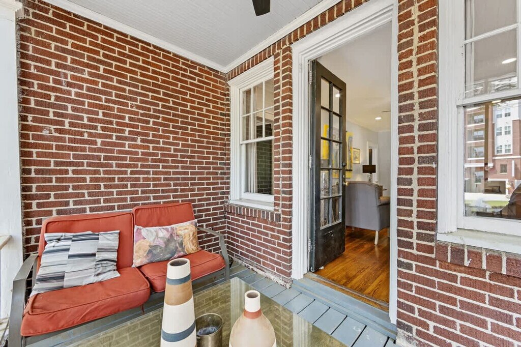 Escape the hustle and bustle of the city and feel at home in this super-clean, dog-friendly, 2-bedroom condo on prestigious Queens Road. This first-floor condo in a historic 1920's building has large double-hung windows that let in an abundance of light. This condo features a full kitchen, a large dining area, and upscale furnishings. The kitchen is fully equipped with essentials such as measuring cups, spoons, mixing bowls, roasting pans, and a garlic press, and it features a gourmet gas range, a convection oven, a refrigerator with an ice maker, a dishwasher, and a stackable washer and dryer. The spacious living room features a large, upholstered sofa that pulls out into an additional bed and a flatscreen television with streaming and Live TV. The main bedroom has a king-size bed with a television and a generous closet, and the second bedroom has two twin beds and a flatscreen television. The twin beds can be pushed together to create one king-size bed. The bathroom is spotless and features plush towels, as well as a starter supply of bath products and detergents. Relax in the screened-in porch overlooking lush landscaping, as well as a private patio on the ground floor. The building has a shared patio that includes a grill, tables, and chairs. On-site parking is available. A workstation with a 32” monitor, wireless keyboard, and mouse is available for rent for $10.00 per day. Single beds can be joined into a king-size bed for a one-time $50 fee. If you are traveling with a dog, it must be registered at a cost of $59 per dog (two maximum). If you do not register your dog, you will be charged $120 per dog. Located in historic Myers Park, Queens Road is the heart of Charlotte’s premier neighborhood, replete with wide sidewalks and towering oaks. This incredibly safe community provides an ideal place for walking or jogging and is just a short stroll from multiple coffee shops and restaurants. Within a half mile walking distance are more than 40 locally owned restaurants, as well as Starbucks, Panera, and Old Pancake House. On the ‘Myers Park Mile,’ you will find many locally owned shops including antiques, fine gifts, wines, and bespoke clothing for men and women. Charlotte’s renowned greenway is less than a half mile away. Uptown Charlotte is only one mile away and a short walk or ride to the Carolina Panthers and Charlotte FC Stadium, Hornets/Spectrum Arena, Knights Baseball Stadium, Discovery Place, Convention Center, Bechtler Museum of Modern Art, Mint Museum, Spirit Square, Gantt Center for African American Arts + Culture, Discovery Place Science, and NASCAR Hall of Fame. Just a 12-minute walk to Atrium CMC and Novant, and a 5-minute walk to Myers Park Mile. Charlotte’s biggest and best fitness center, the Dowd Y, is only five minutes away. Dogs are never allowed on the furniture or bed. If there is hair on the furniture, excess hair in the home, stains, damage, or waste found in the yard or home, you will be charged an additional fee. Smoking any substance is strictly prohibited on the premises and may result in a $500 penalty. Our property has a zero tolerance for parties, unruly behavior, loud music, disrespectful or unlawful activities. Violations will warrant forfeit of the entire reservation and may incur additional fees. Please observe quiet hours from 10:00 pm to 7:00 am. A desk and ultra-fast Wi-Fi enable business travelers to stay plugged into their busy schedules. Enjoy ultra-fast Wi-Fi and Hulu + Live TV. [SI]