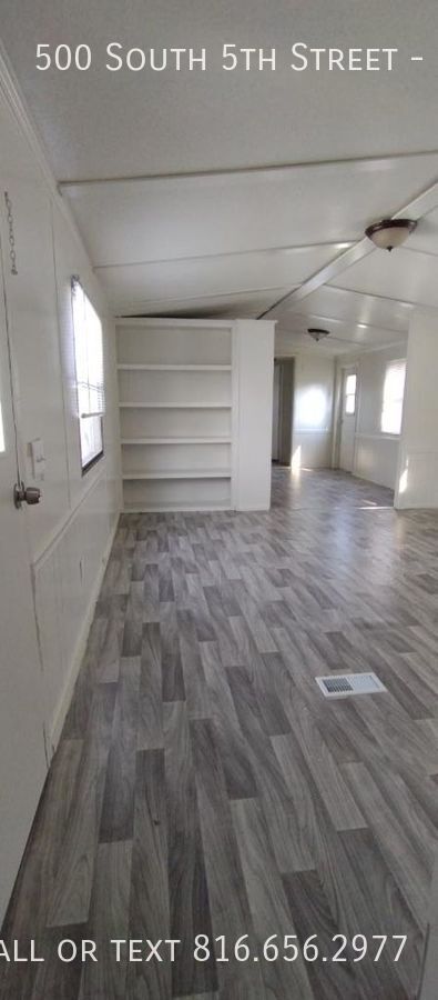 Mobile home Located in Odessa, Missouri. 2 Bedrooms and 1 bathroom. New flooring put throughout mobile home. Very quiet area. $800 per month for rent plus $150 for utilities included (trash, electricity). Water billed to tenant Our requirements are: no evictions or felonies no smoking in units 3x rent in monthly income. Pet Friendly (($200 pet deposit per pet, then $35Monthly Rent) All 18+ Tenants Must Apply $50 application fee Parking Lots 1-8 Have Street Parking Lots 9-16 have Parking next to Trailer