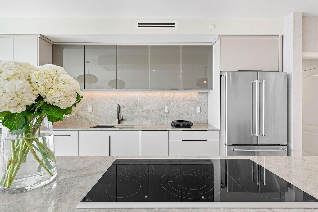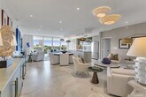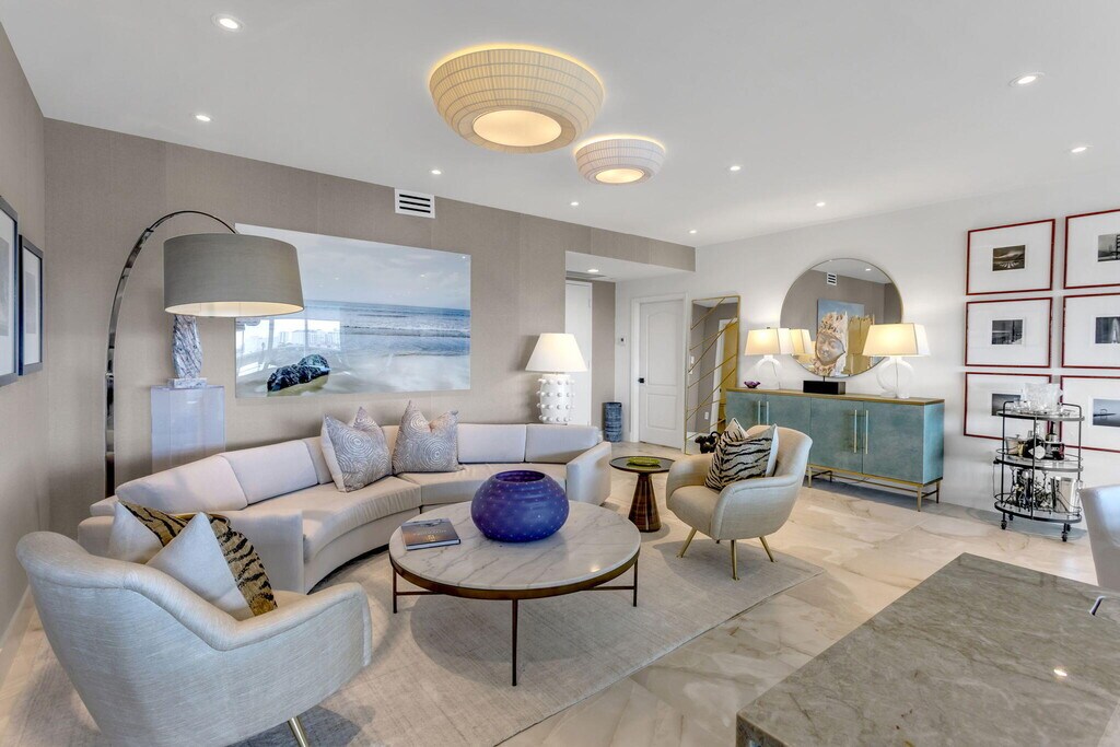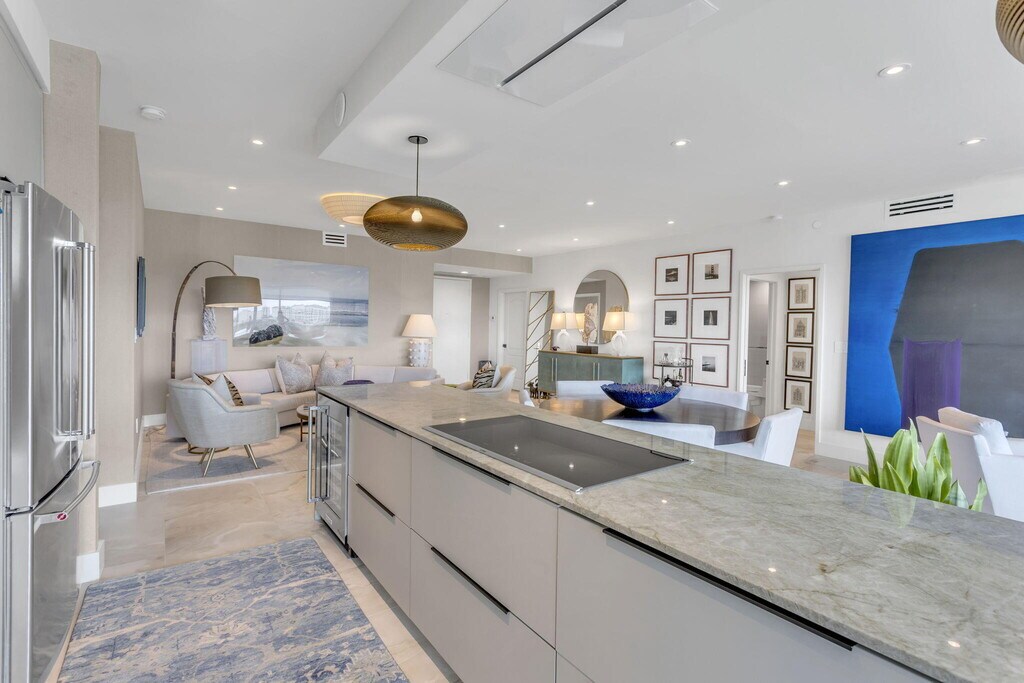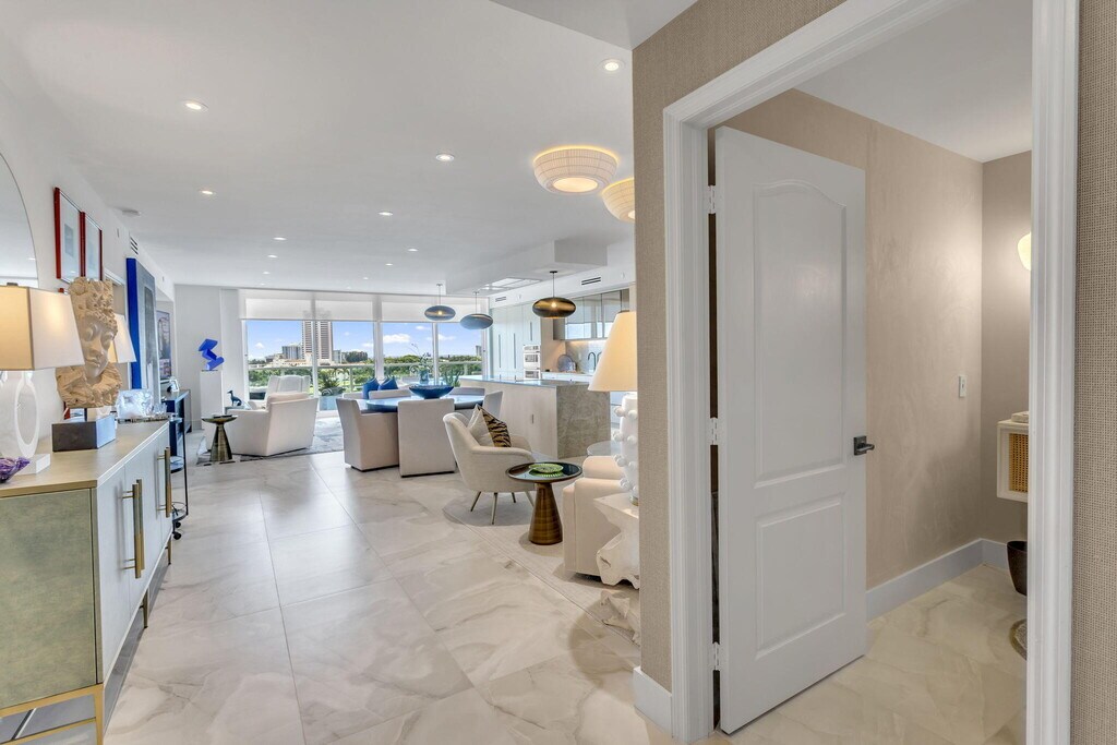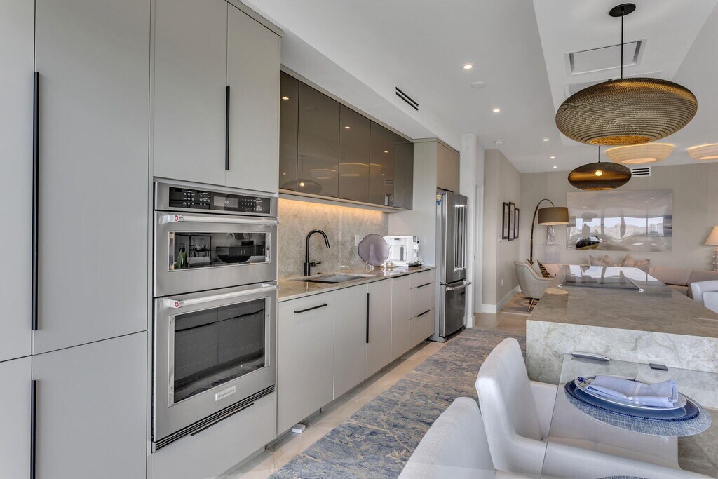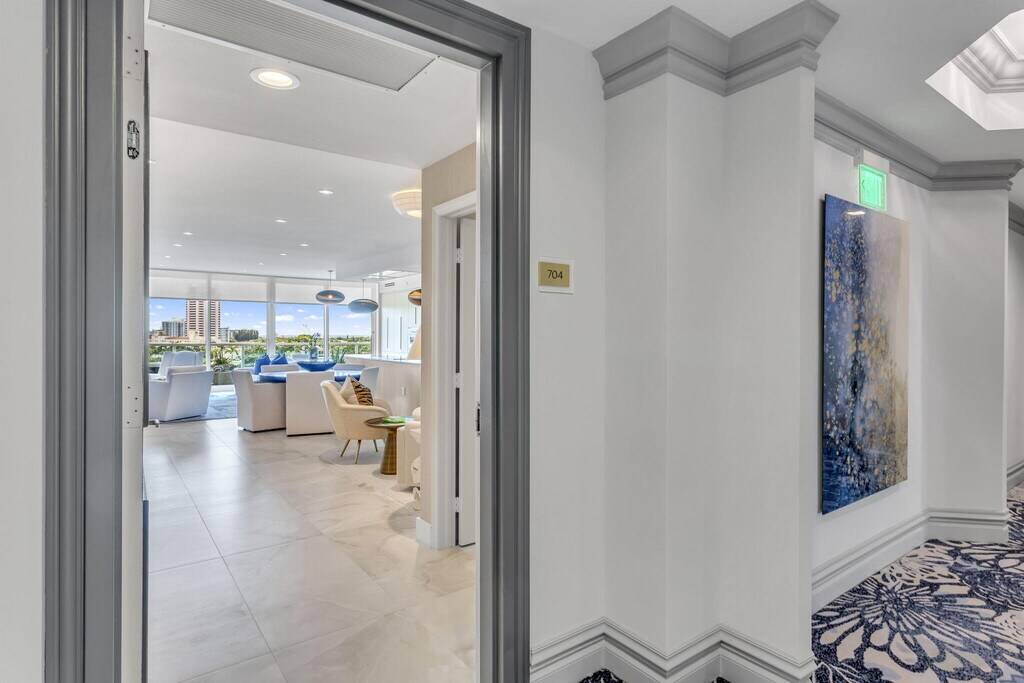 RARE LUXURIOUS TOWNSEND PLACE PENTHOUSE with expansive terrace overlooking the Alina pool and owner can offer the PRESTIGIOUS BOCA RESORT MEMBERSHIP for addl fee. Townsend Place is one of Boca’s most sophisticated boutique buildings, nestled between the new Alina and the Mandarin Oriental on the top floor of this prestigious 9-story bldg. Exclusive, chic 2,000+ sq ft penthouse w soaring ceilings, simple minimalist furnishings, and a spacious balcony w floor to ceiling sliders. Great room encompasses a media lounge with dramatic inset-ribbon fireplace, & cocktail lounge punctuated by a bespoke wine wall. The centerpiece is an oversized island & open kitchen, high-gloss custom cabinetry & quartz counters. A split ensuite bedroom layout, with a primary bedroom suite