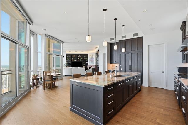 Perched high above Downtown Fort Worth, The Tower Penthouse #3601 offers a rare opportunity to lease a premier residence in one of the city’s most iconic high-rises. Spanning nearly 4,600 square feet across two levels, this exceptional duplex combines refined design, breathtaking skyline views, and an unmatched urban lifestyle. An inviting foyer opens to a dramatic main living space where floor-to-ceiling windows showcase sweeping panoramic views. Natural light fills the home by day, while city lights create a stunning backdrop by night. The open-concept layout features soaring ceilings, hardwood floors, electric shades, and designer lighting—ideal for both everyday living and entertaining. The chef’s kitchen is appointed with Thermador appliances, including a six-burner gas cooktop and double wall ovens. Granite and quartz countertops, custom cabinetry, a walk-in pantry, and large island with bar seating provide both style and function. The dining area flows seamlessly from the living space and includes custom built-ins, a wine cooler, and statement lighting. The residence offers four ensuite bedrooms with flexibility for guest rooms or offices. A bonus room on the first level provides space for a gym, storage, or additional closet. Upstairs, the primary retreat features a sitting area, custom bar, floor-to-ceiling windows, dual closets, and blackout shades. The spa-inspired bath includes a walk-in shower and built-in sauna. Two expansive balconies extend the living space outdoors, perfect for enjoying sunrise coffee or sunset views. A private in-unit elevator connects both levels with ease. #3601 includes three deeded parking spaces and access to premier amenities, including 24-hour concierge, a resort-style pool, fitness center, guest suites, and secure parking. Located in the heart of Downtown, this #3601 offers walkable access to Fort Worth’s best dining, entertainment, and cultural destinations. A rare lease opportunity awaits!