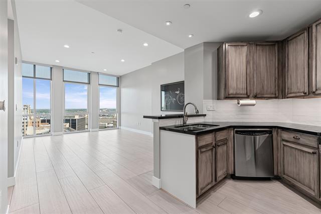 FOR LEASE! If you’re seeking the luxury of high-rise living, look no further! This stunning 23rd-floor condo near Sundance Square offers breathtaking views of downtown Fort Worth through floor-to-ceiling windows, complete with remote-controlled blinds. The unit boasts numerous upgrades, including granite countertops, a stylish backsplash, under-cabinet lighting, and gorgeous wood floors. The bedroom features newer carpet and an upgraded closet organizer. Enjoy an array of amenities such as a serene pool, an outdoor seating area with a pergola, a putting green, a renovated gym, concierge services, and secured access. The 5th-floor community lounge, perfect for hosting gatherings, includes a pool table, fireplace, and a large-screen TV. Conveniently located near the Museum District, TCU, and the Historic Fort Worth Stockyards, this condo offers easy access to a variety of restaurants, shops, and entertainment—all within walking distance. A covered parking spot in the parking garage is included for added convenience. $100 application fee- $150 move-in- move-out fee applies.