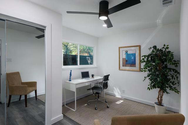 Beautifully updated duplex in the heart of Hyde Park, just blocks from the Triangle, Intramural Fields, and nearby bus stops. Enjoy a quick bike ride or shuttle to UT, Hancock Shopping Center, as well as popular restaurants and coffee shops. Recent renovations feature new flooring, cabinetry, quartz countertops, stainless steel appliances, fresh interior and exterior paint, plus ceiling fans throughout. The layout offers no shared walls, with units divided by a carport. Additional highlights include a private fenced yard, dedicated washer and dryer, parking for one vehicle in the carport and another in the driveway, with street parking also available.
