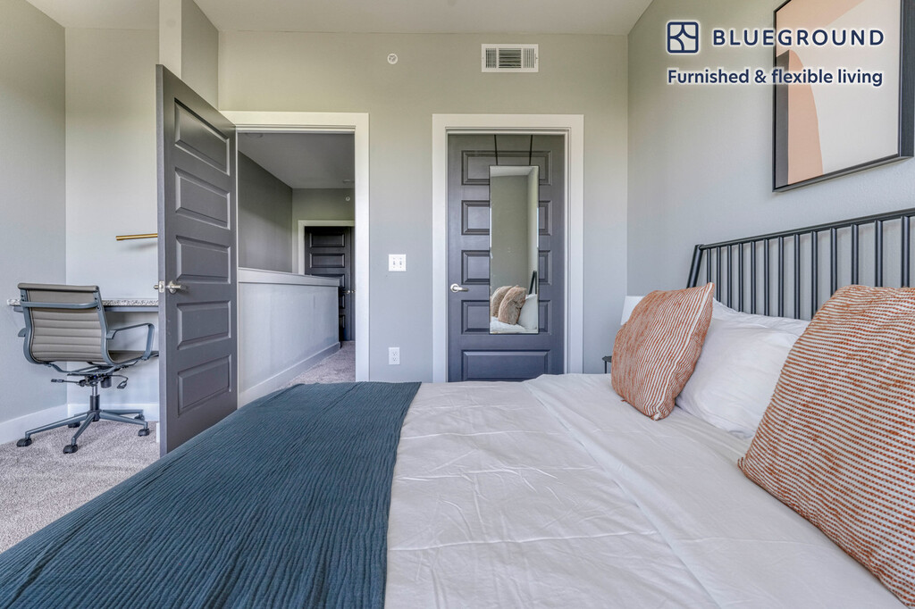 Discover the best of Austin, with this one bedroom apartment in Austin. It’ll be easy to simply show up and start living in this furnished apartment with its fully equipped kitchen, living room, and our dedicated, on-the-ground support. (ID #ATX262) The advertised rate of $1,380/month is the lowest available price, based on a 6 month(s) and 5 day(s) stay with a move-in date of April 1, 2026. If you’re looking for a 1-year stay, the rate is $1,710/month. Rates vary depending on the duration of stay, season, and other parameters. For exact pricing and additional pricing components, please visit our website and enter your desired move-in and move-out dates. The rate is applicable when billed upfront; it can be higher if billed in multiple payments. Brokers are welcome to reach out. Were you looking for an unfurnished lease? Try Blueground instead and upgrade from unfurnished to furnished living: - Furnished at rates comparable to unfurnished - No setup or furniture costs - save thousands - Move-in ready - save time, just bring your suitcase Designed with you in mind Gorgeous furniture, fully equipped kitchen, smart TV, and a premium wireless speaker are just a few of the amenities you’ll find inside this one bedroom apartment. Ideally located in Austin, you’ll find a lot to love outside as well. When you’re ready to relax, you’ll be happy to discover every Blueground bedroom comes with superior quality mattresses, fully stocked linens, and cozy towels. We handle everything so you can simply show up and start living. This apartment also offers in-apartment laundry. Sleeping arrangements King Bed, 70.8in/180cm Amenities Building amenities unique to this one bedroom apartment include an on-site: - Dryer - Elevator - Swimming pool - Washing machine - Lounge - Parking - Pets allowed Arrival and ongoing support The entire apartment is yours to enjoy! Throughout your stay, you’ll have access to our Client Experience team through the Blueground App. You can schedule additional cleanings, submit maintenance requests, and view our neighborhood recommendations with just a few taps. We’ll share all details upon confirmation of your stay. Other things to note Building amenities may have an extra cost. This Blueground apartment has flexible lease options, allowing you to book it for one month, a year, or more. Pets are welcome, though weight limits and breed restrictions apply and may incur fees. Parking is offered based on availability and is subject to a fee. We take great pride in ensuring every photo displayed is shot in our own units with our actual furnishings. That said, we regularly refresh our decor and furniture arrangement, which may differ from what’s pictured. Also note - There are stairs leading up to the entrance of this apartment, but no elevator [PL]