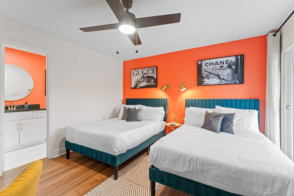 The advertised rate of $7,220/month is the lowest available price, based on a 30 day(s) stay with a move-in date of March 30, 2026. Rates vary depending on the duration of stay, season, and other parameters. For exact pricing and additional pricing components, please visit our website and enter your desired move-in and move-out dates. The rate is applicable when billed upfront; it can be higher if billed in multiple payments. Feel at home in this 2,584 sqft duplex near the World Cup venue and everything Houston has to offer. This 4-bedroom, 4.5-bathroom home is a 2-story home with a staircase, and all bedrooms are on the 2nd floor. This home comes standard with a fully stocked kitchen, spacious bedrooms, a fenced yard, and a washer and dryer. Each unit features a dining table with seating for four, an extended bartop with seating for four, and a fully equipped kitchen with pots and pans, bakeware, dinnerware, silverware, cookware, a blender, and a toaster. Enjoy complimentary coffee and tea with a Keurig machine and pour-over coffee. For entertainment, there are 65” smart TVs in the living rooms with access to live cable (YouTubeTV), Disney+, Amazon Prime Video, HBO Max, and Hulu, and 43" smart TVs in each bedroom. The fenced backyard includes outdoor seating, a propane grill, and yard games (ladder toss and cornhole). This is a pet-friendly property with pet fees that apply. Located in Houston’s vibrant NRG/Medical Center district, this home is close to world-class healthcare, sports, culture, and nightlife. It is 11 minutes from NRG Park and the Medical Center, 13 minutes from Midtown and Hobby Airport. Explore the Museum District, Hermann Park, and Midtown, with easy access to downtown’s Discovery Green and Theater District. Quiet hours are between 10 PM and 8 AM. Smoking, parties, and excessive noise are not allowed, and smoking violations are subject to a $1,000 fine, which includes the cost to clean, deodorize, and repair damages. Guests will be charged in full for any damages or violations of the house rules. Undisclosed pets will be charged at $200 per day. You are responsible for picking up after any pet brought to the property. Each bedroom has a designated work desk. Registration Number: STR-2025-000787, STR-2025-000788 [SI]